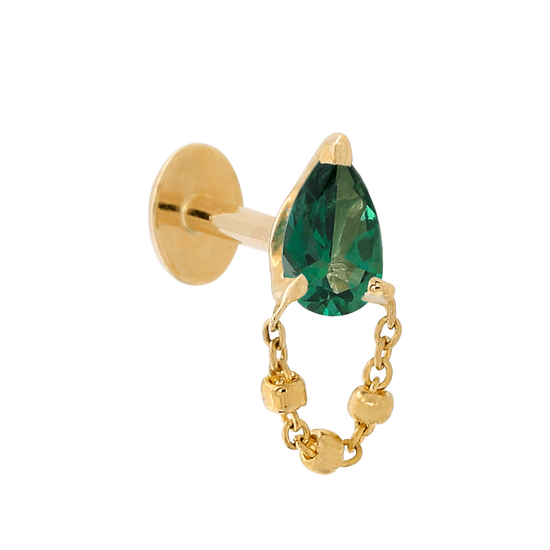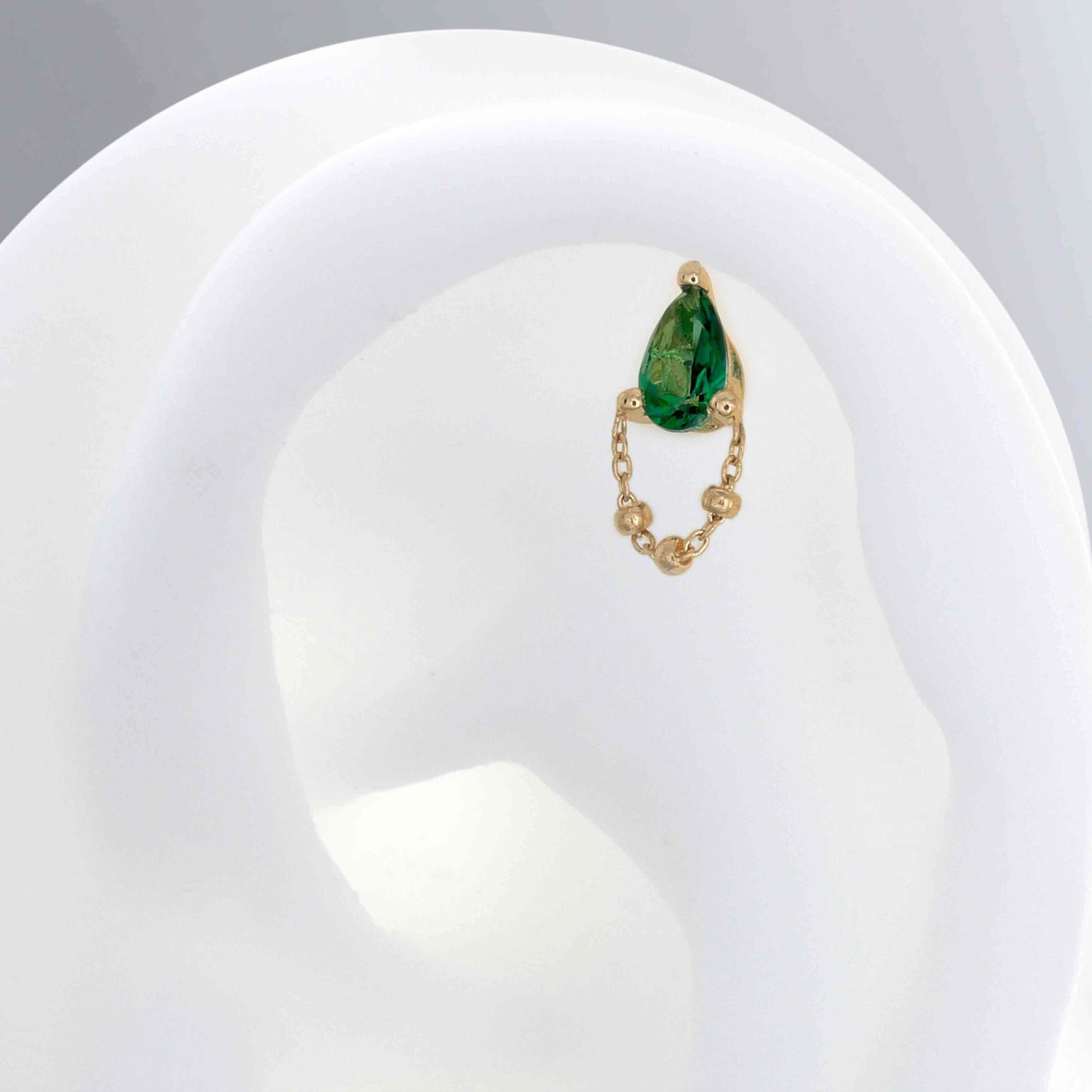 Size: 4mm x 5mm, 11mm w/ chain Material: solid 14k gold Gemstone: Faceted Pear |