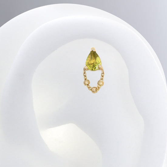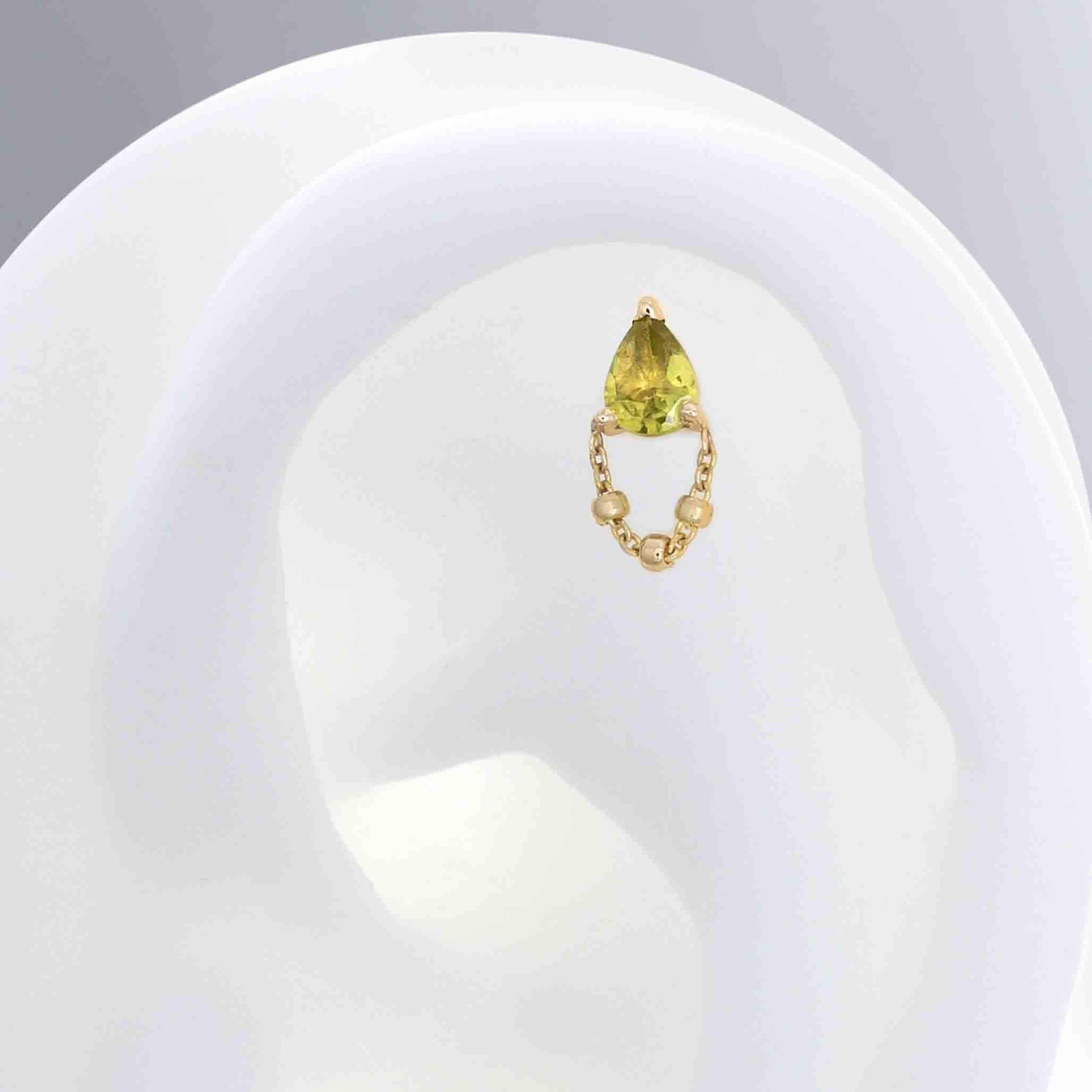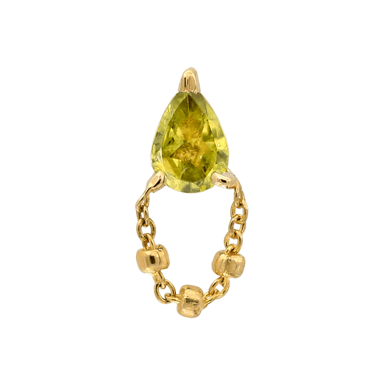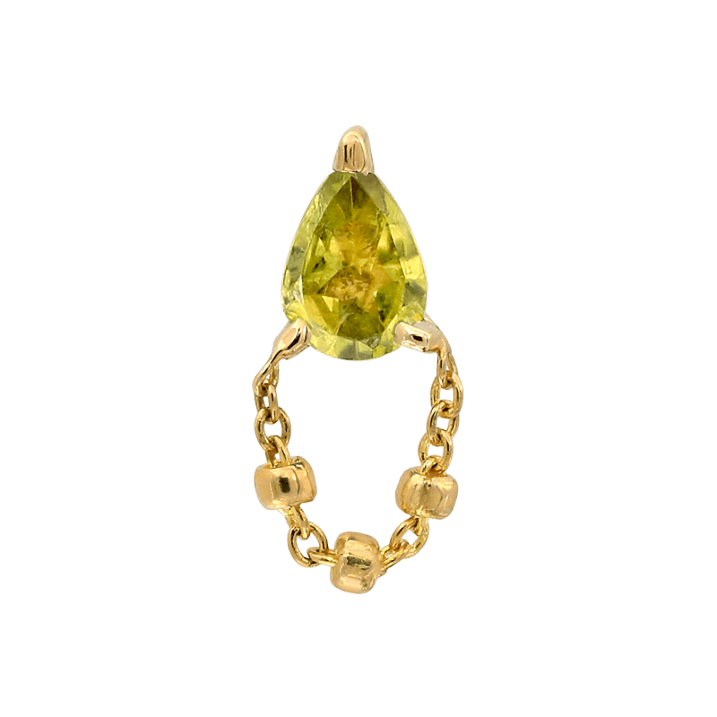 Size: 4mm x 5mm, 11mm w/ chain Material: solid 14k gold Gemstone: Faceted Pear |