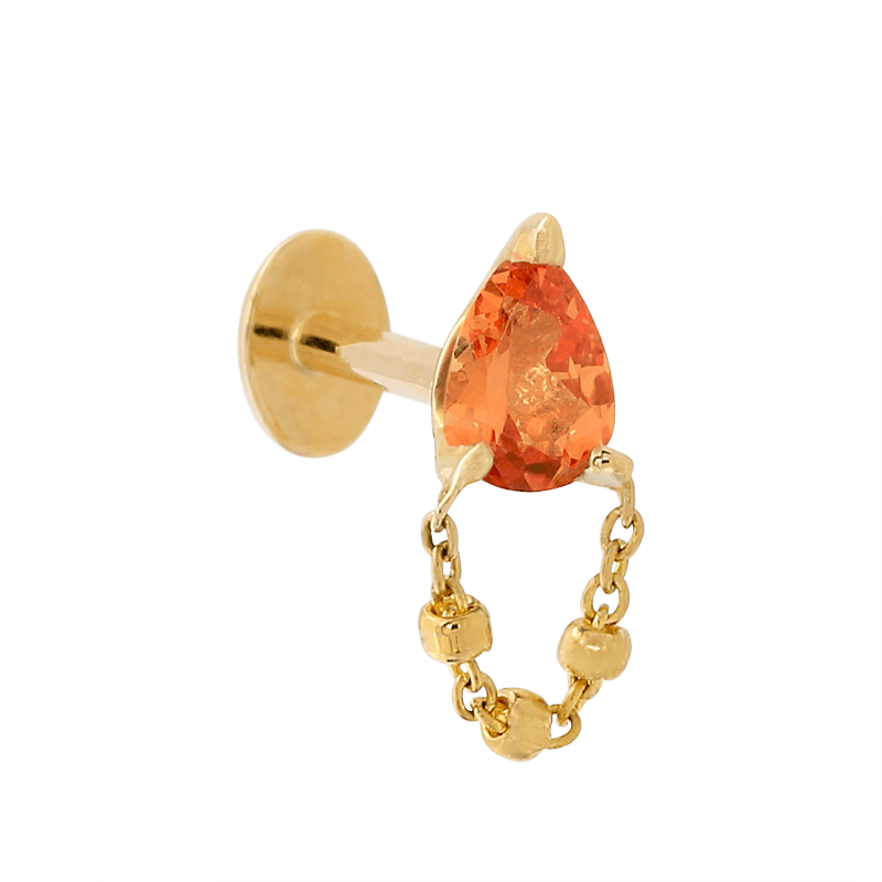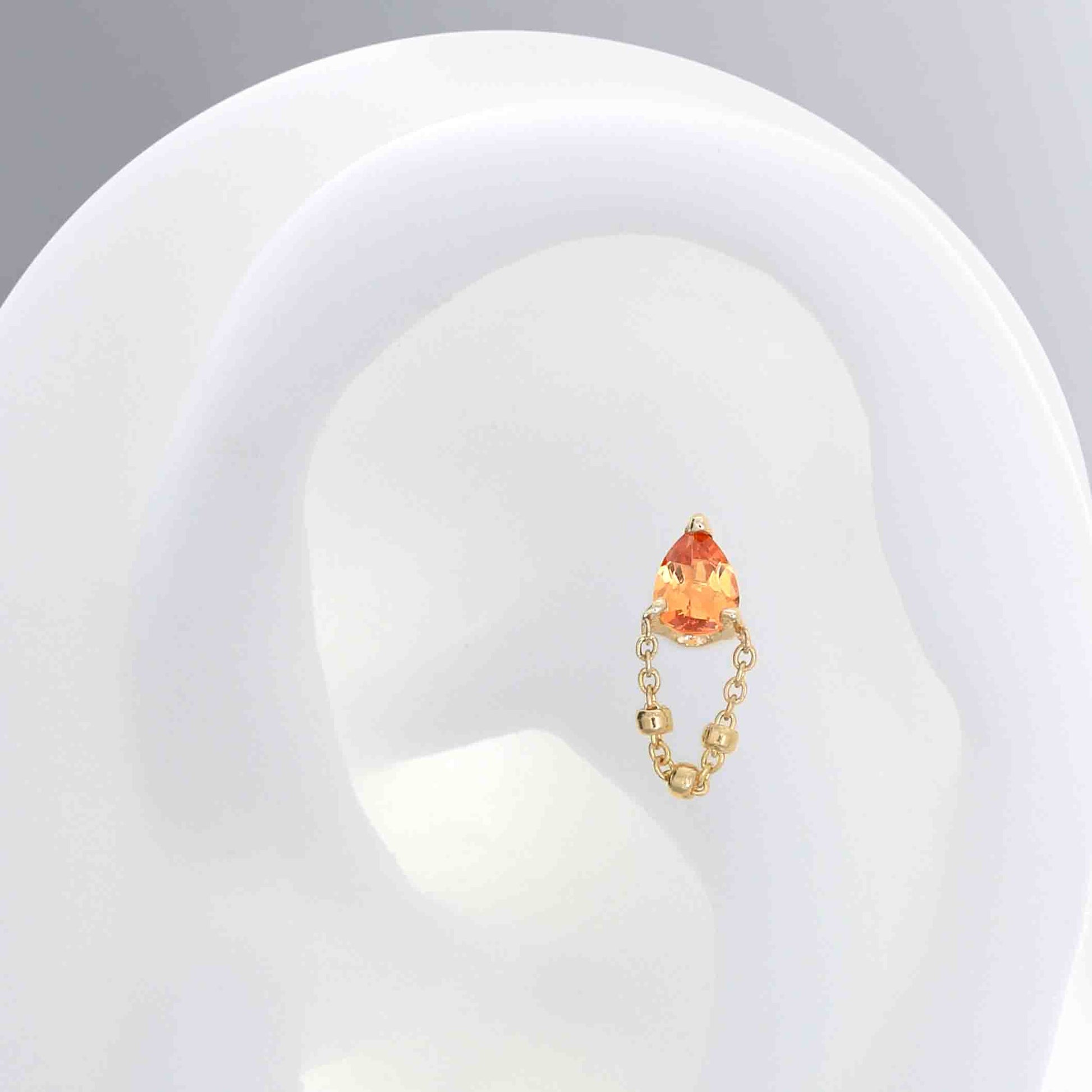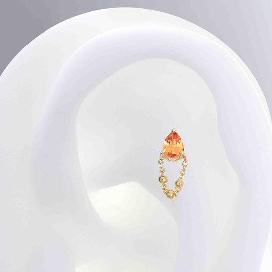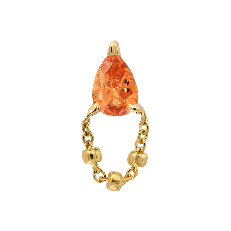 Size: 4mm x 5mm, 11mm w/ chain Material: solid 14k gold Gemstone: Faceted Pear |