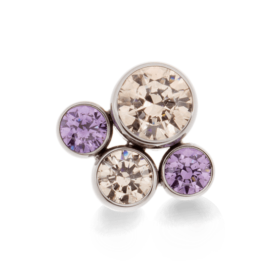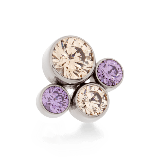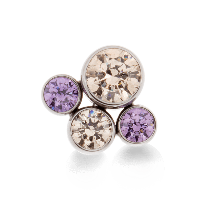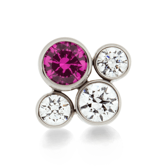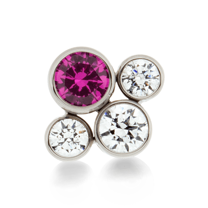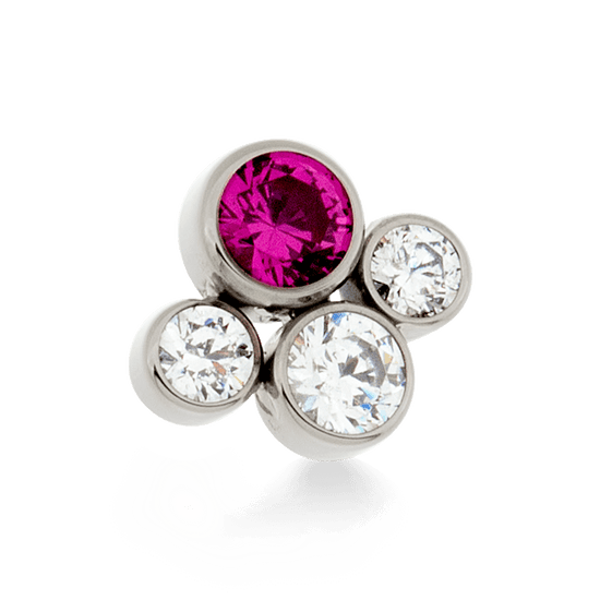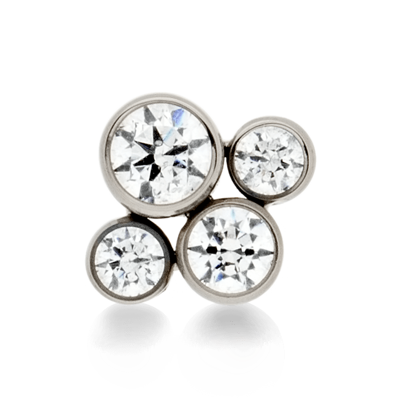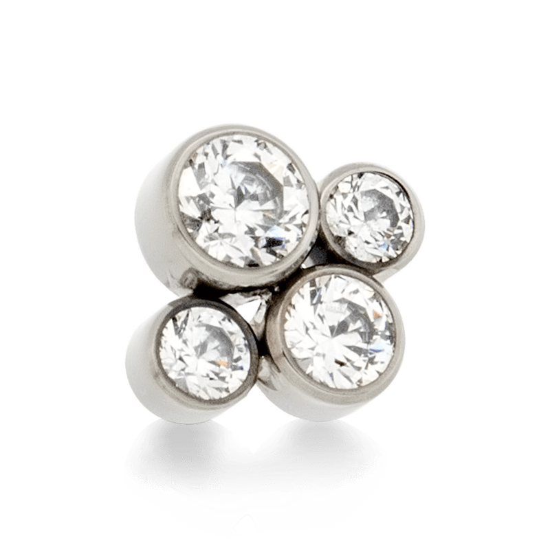 Size: 4mm Center, 3mm Bottom, 2.5mm Sides (8mm x 8.8mm) Material: F136 Implant Grade Titanium Gemstone cut: Faceted Round |