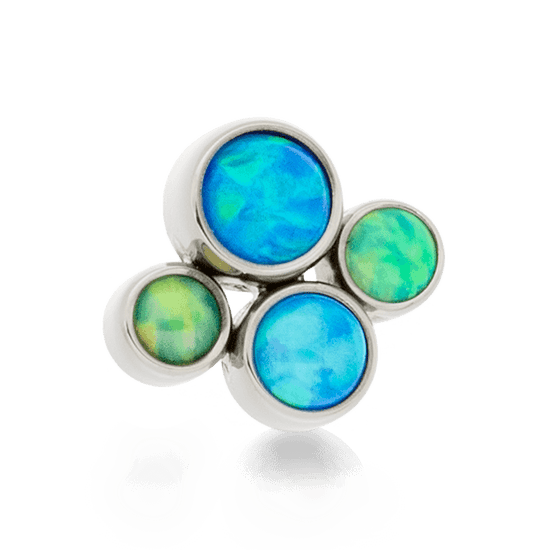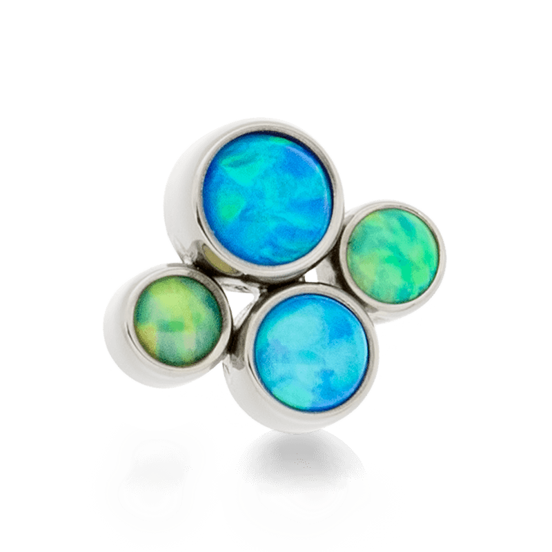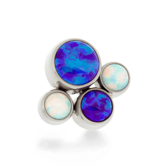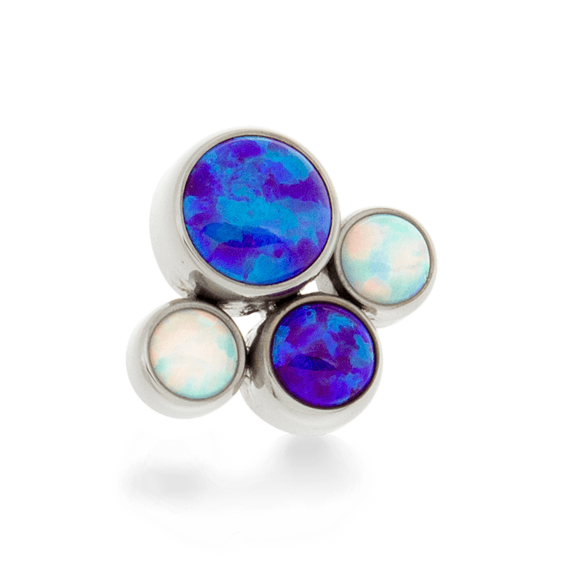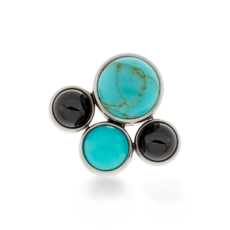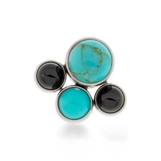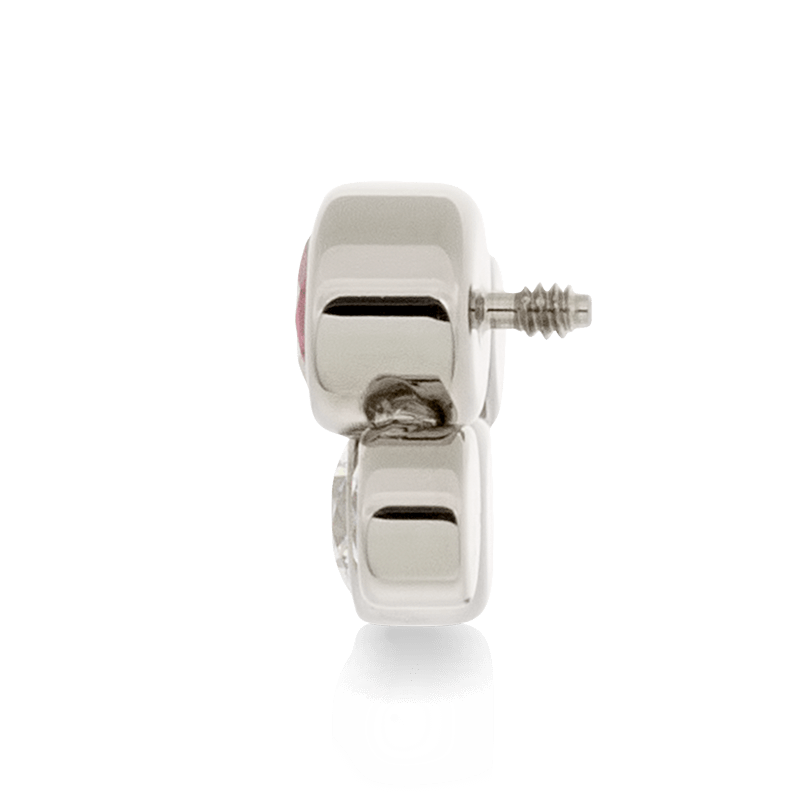 Titanium Threaded End that fits either 18 gauge or 16 gauge threaded bars. Threading is on top center stone.