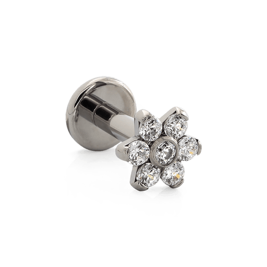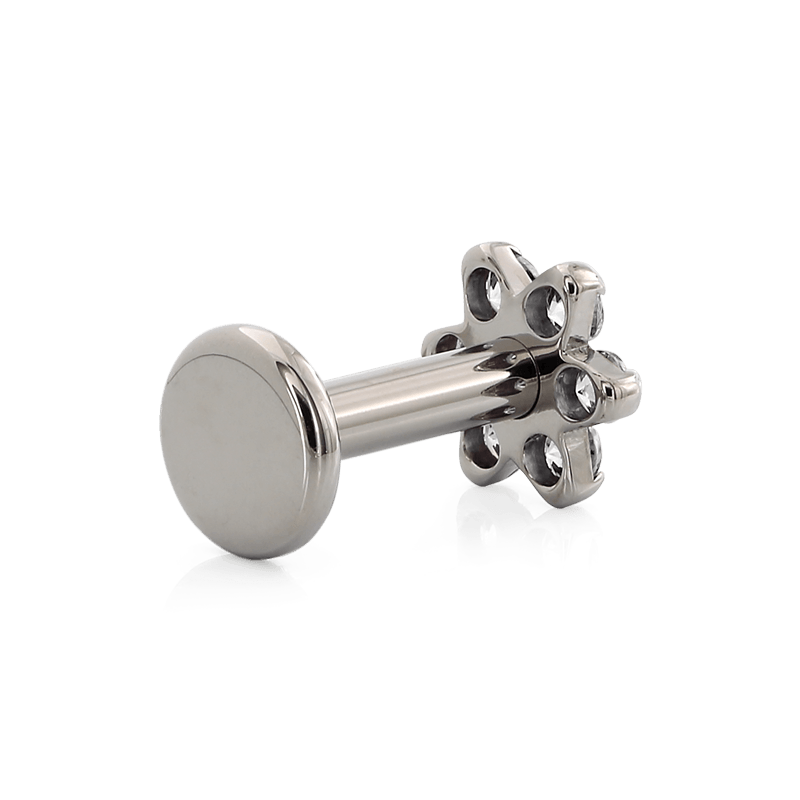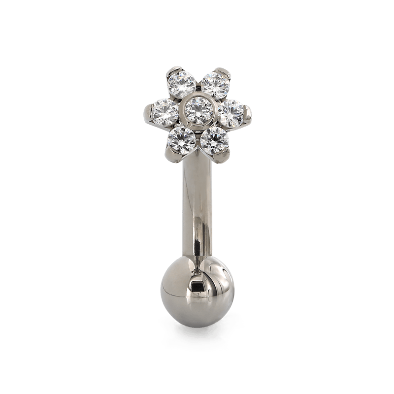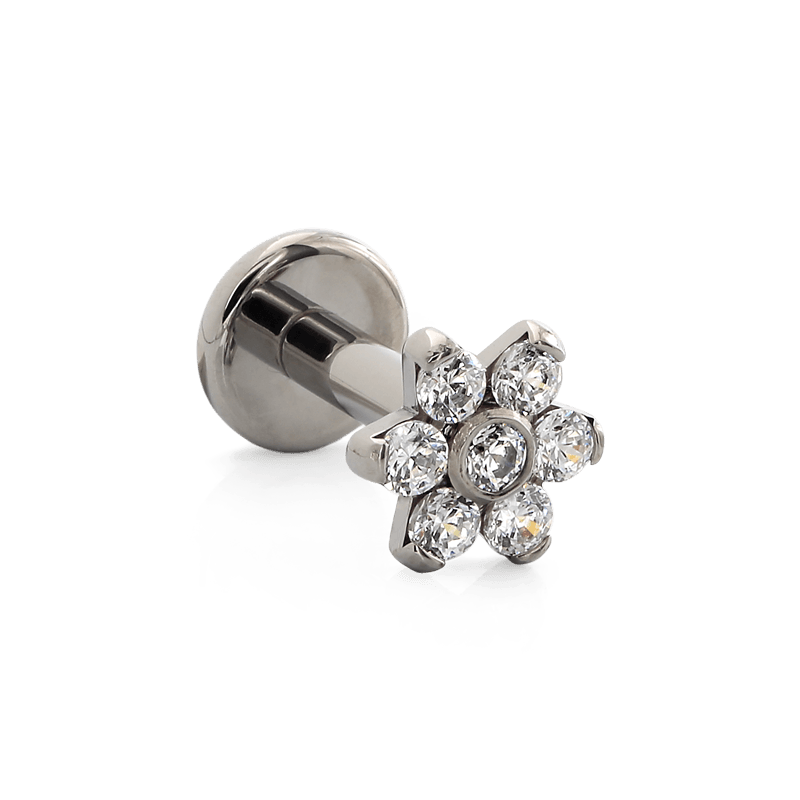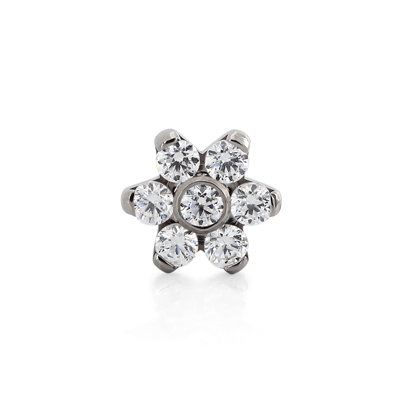 Size: 5mm x 5.5mm Material: Titanium Gemstones: 7 x 1.5mm Cubic Zirconia |