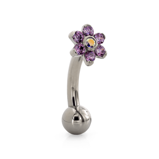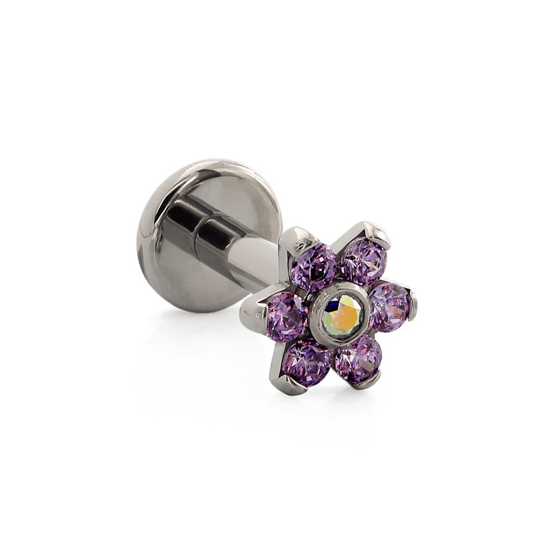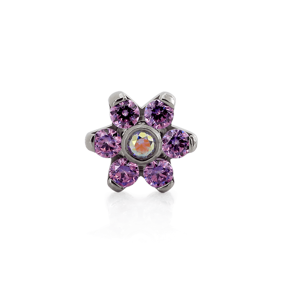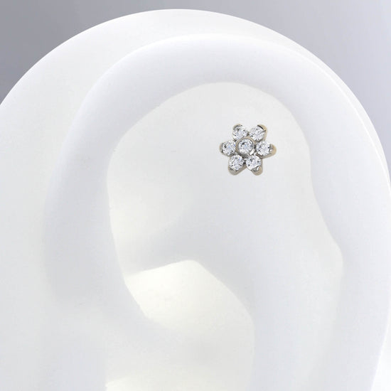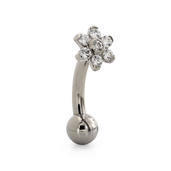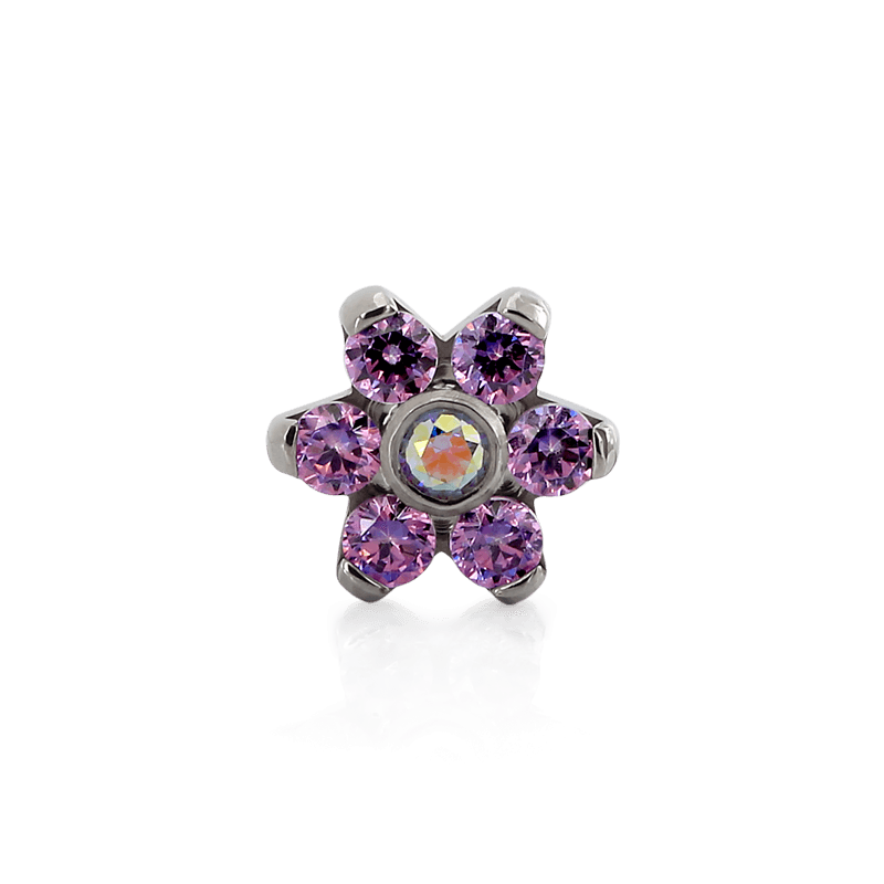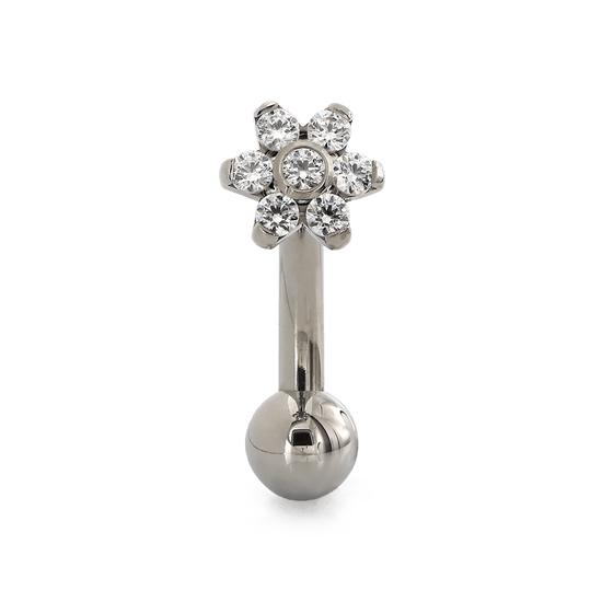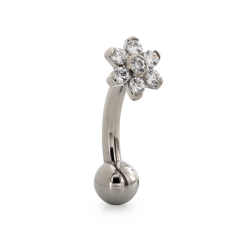 Size: 5mm x 5.5mm Material: Titanium Gemstones: 7 x 1.5mm Cubic Zirconia |