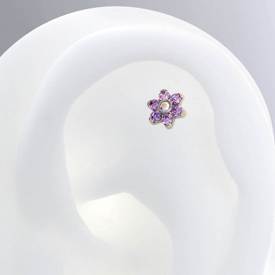 How about a flower to sparkle up your ear! If you want something a little larger than a single stone, but want to keep the profile of your earring low, this piece is perfect. Since it combines 7 small gemstones you get that extra shine without the bulk of a single large stone!
