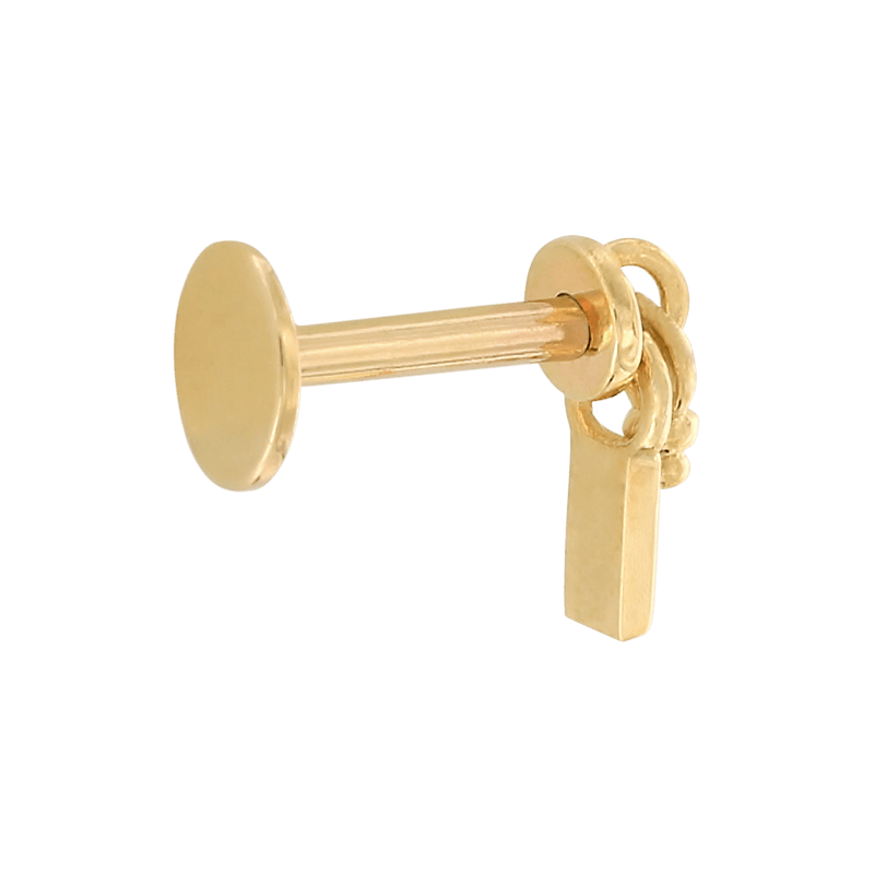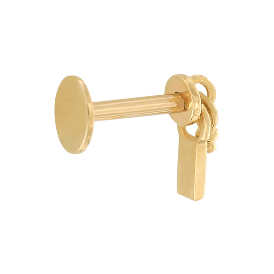Fits most threadless posts. It comes with an 18g 1/4", if you buy With Gold Post. Need a different size? Find your perfect sized gold post here, or titanium post here. |
