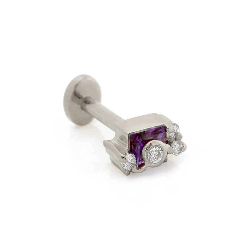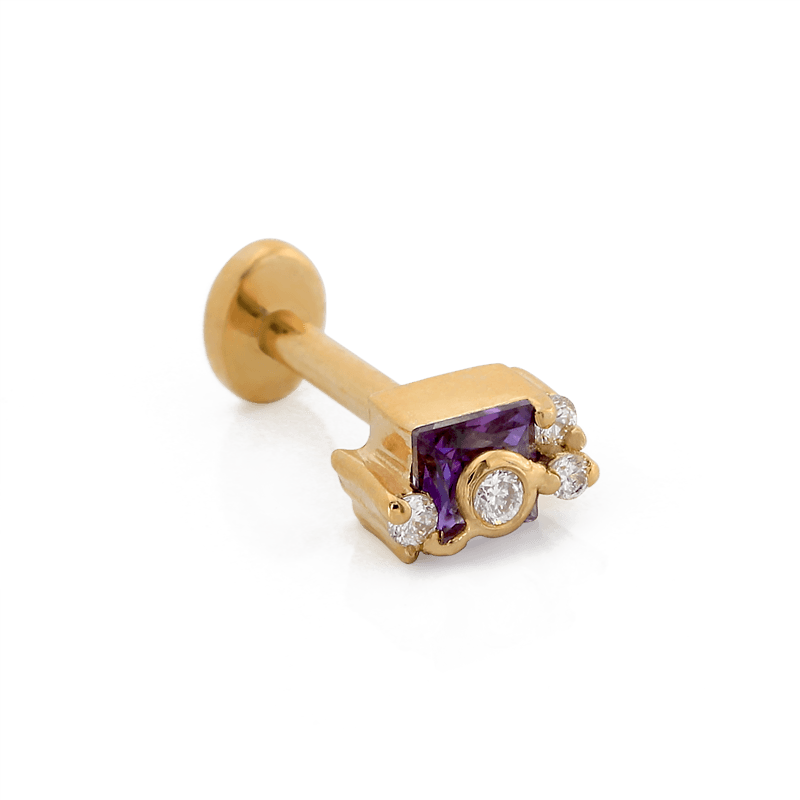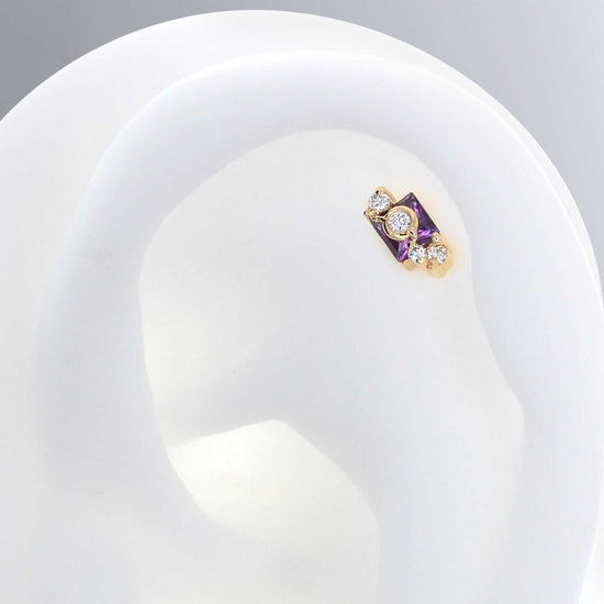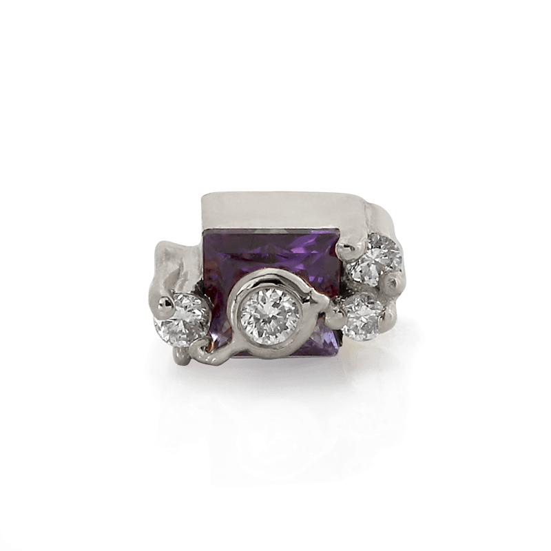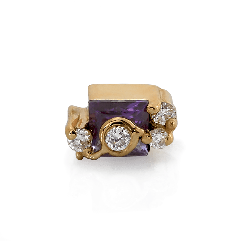 Size: Material: solid 14k gold Gemstone: Faceted Princess Cut Amethyst, Faceted Round Diamonds |