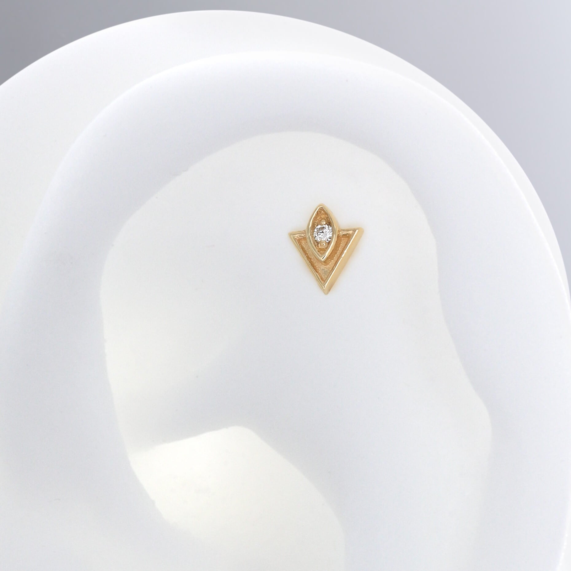 Size: 4.2mm x 5mm Material: solid 14k gold Gemstone: Faceted Round Diamond |