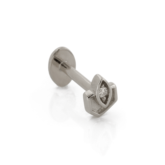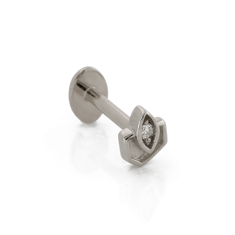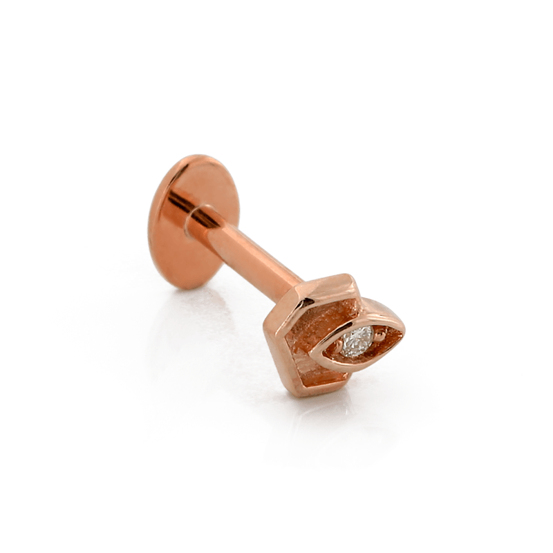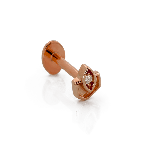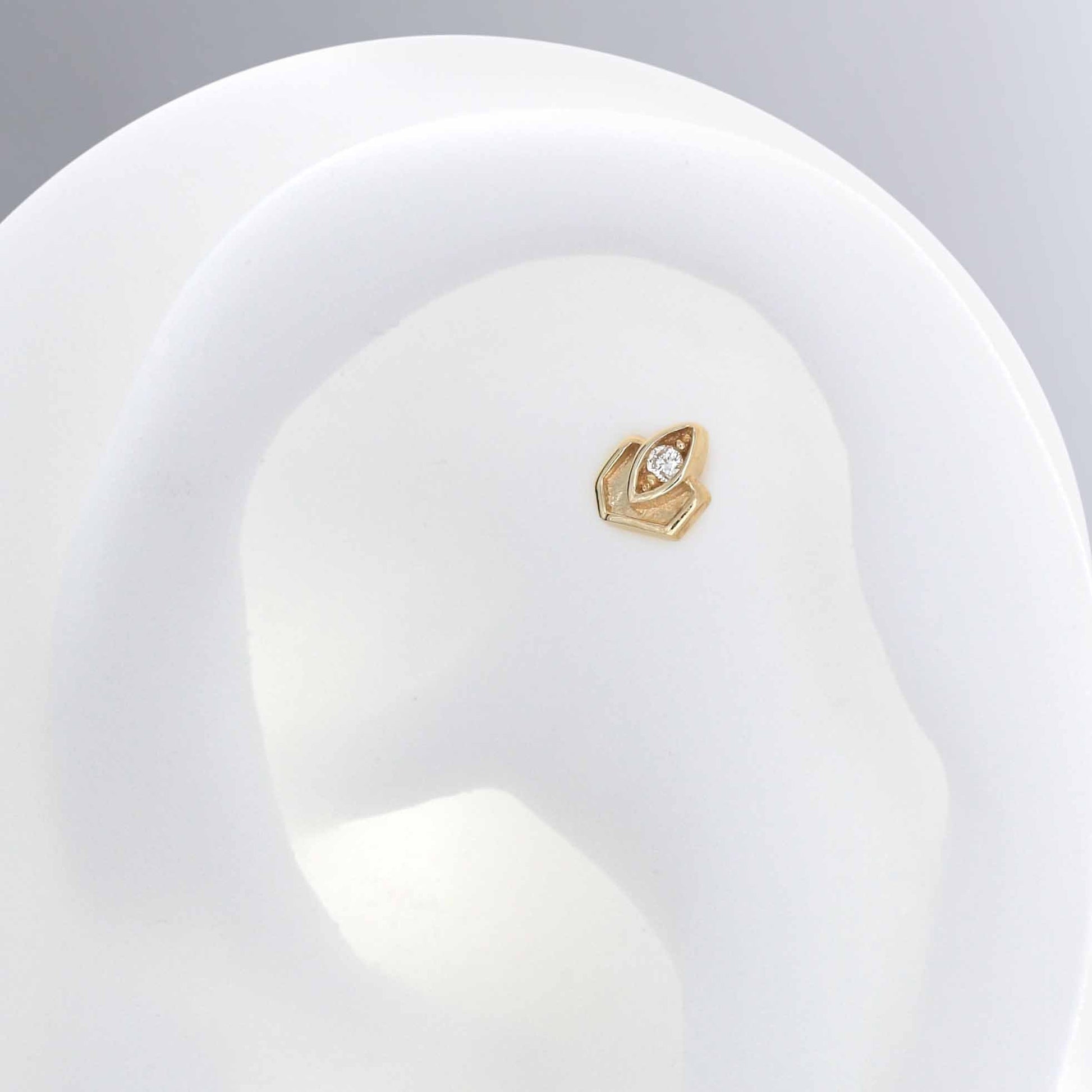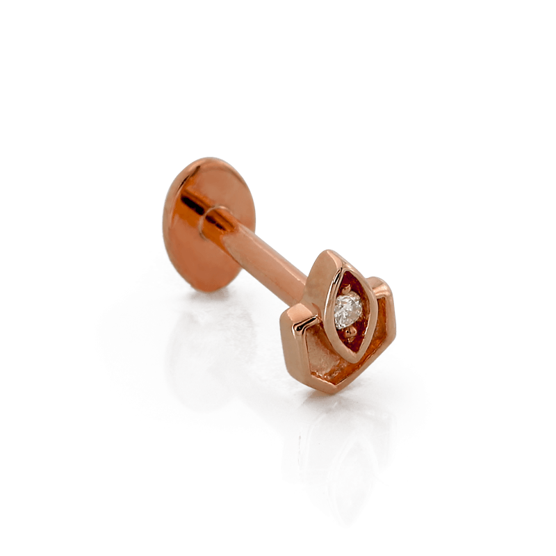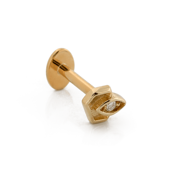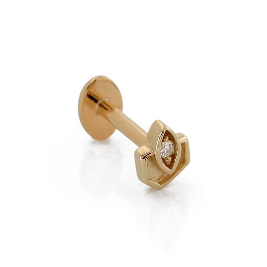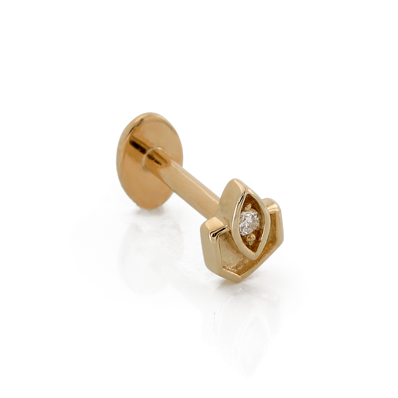 Size: 3.3mm x 4.3mm Material: solid 14k gold Gemstone: Round Faceted Diamond |
