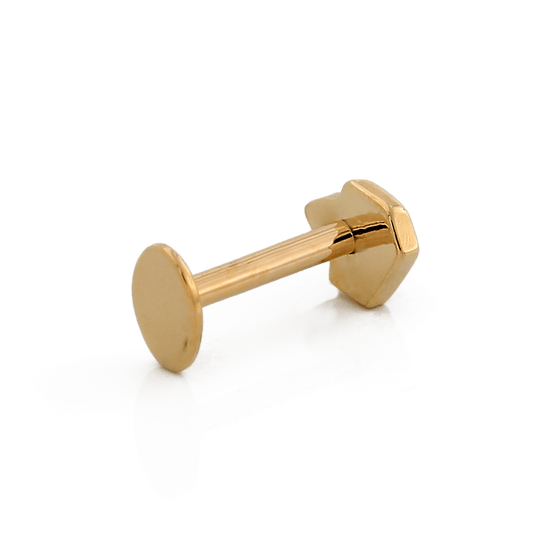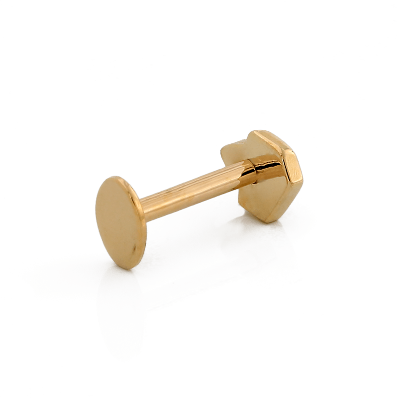 Fits any threadless post. If you buy it with a post in the options, the post is an 18g 1/4". That's the most common size for a healed ear piercing. |
