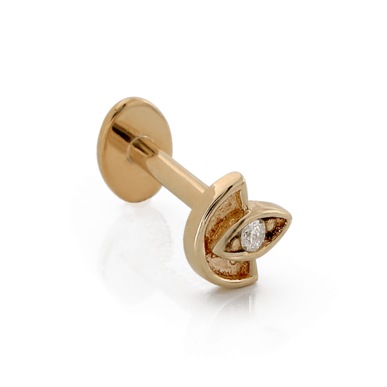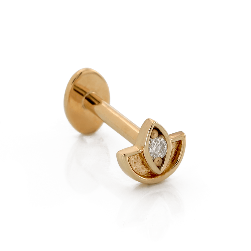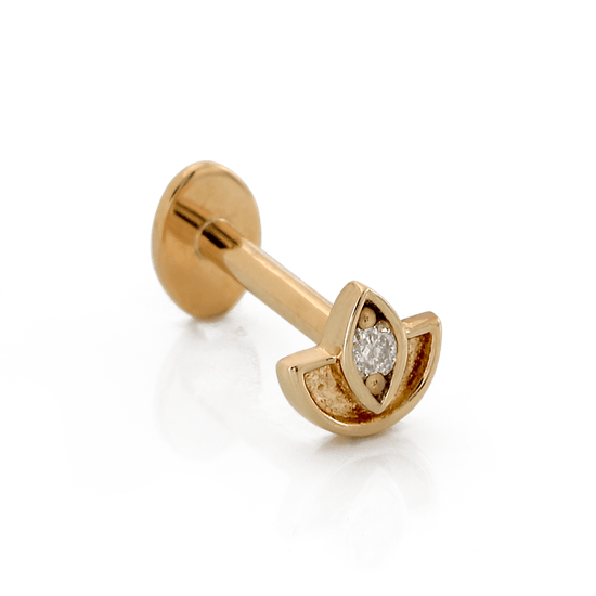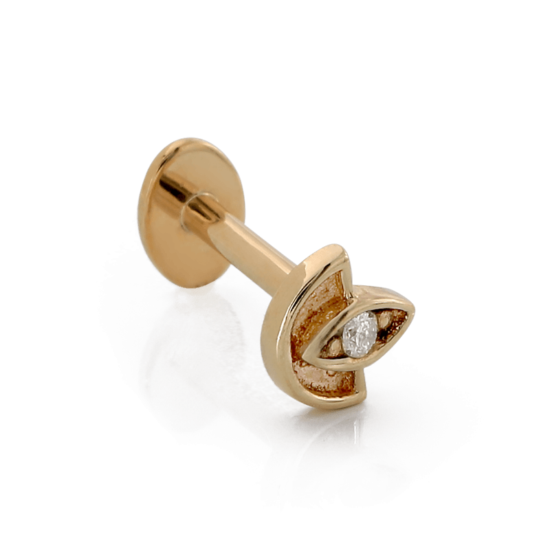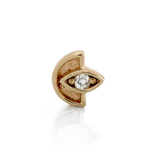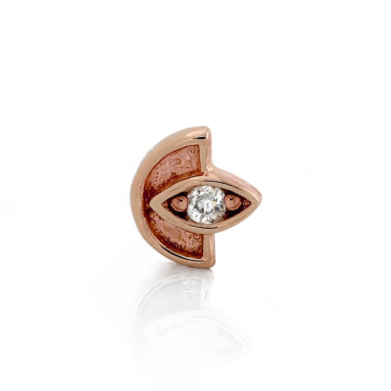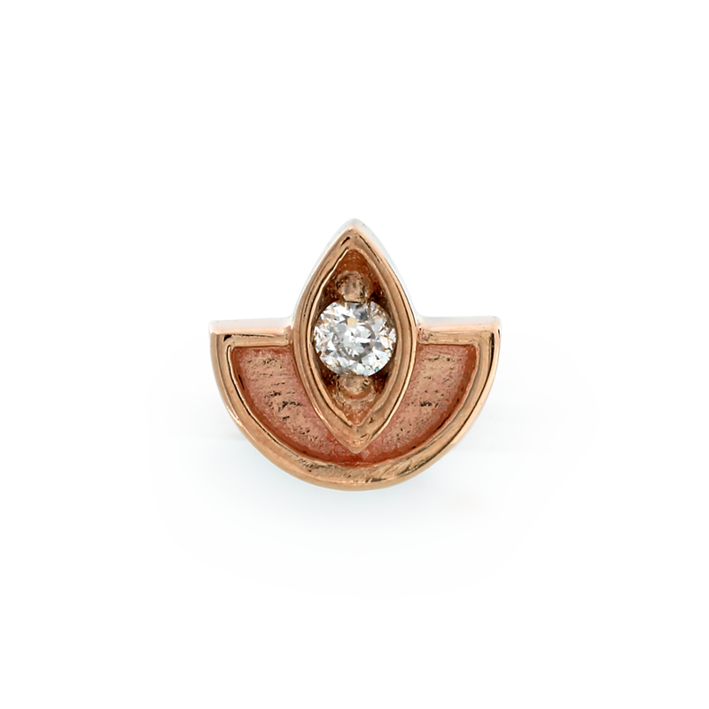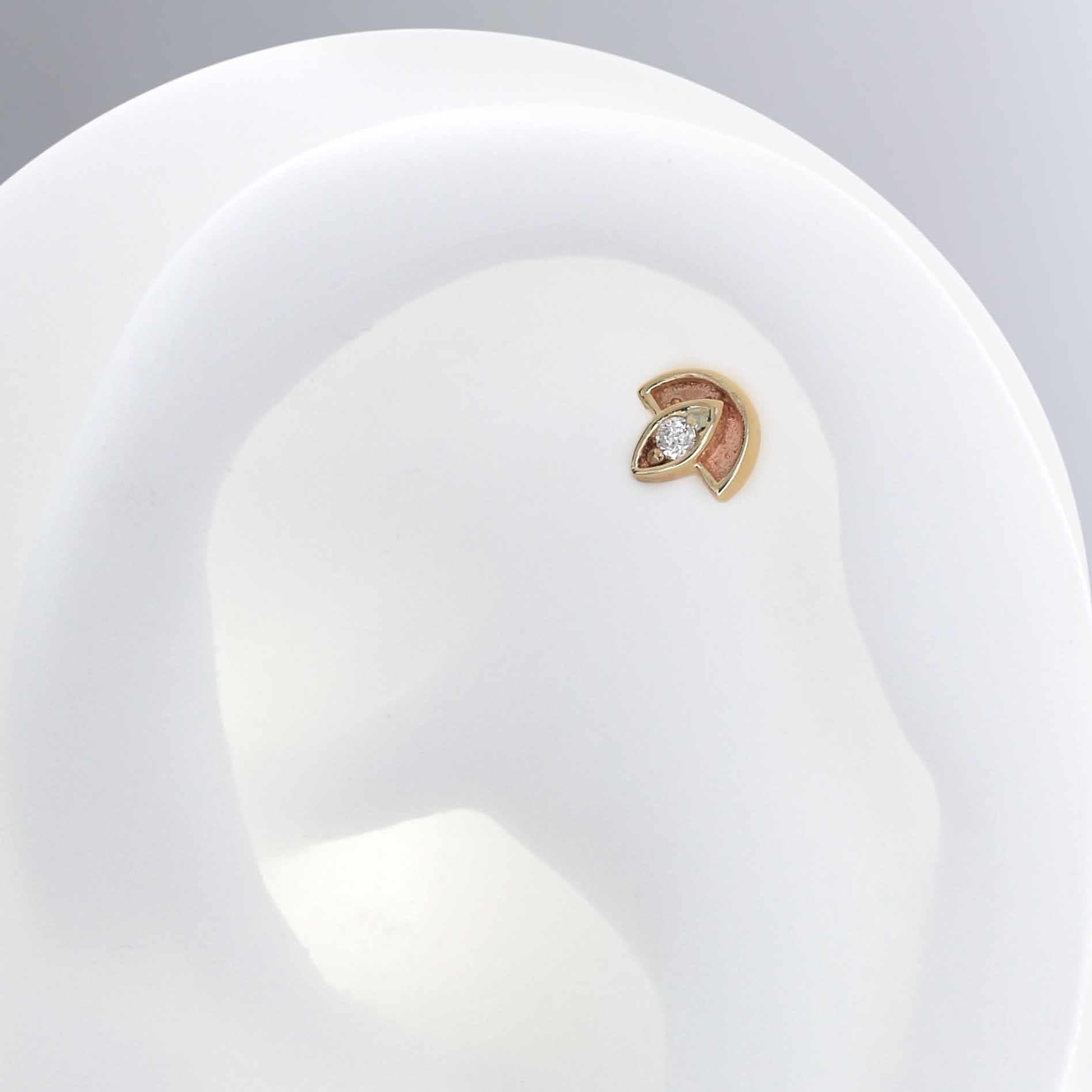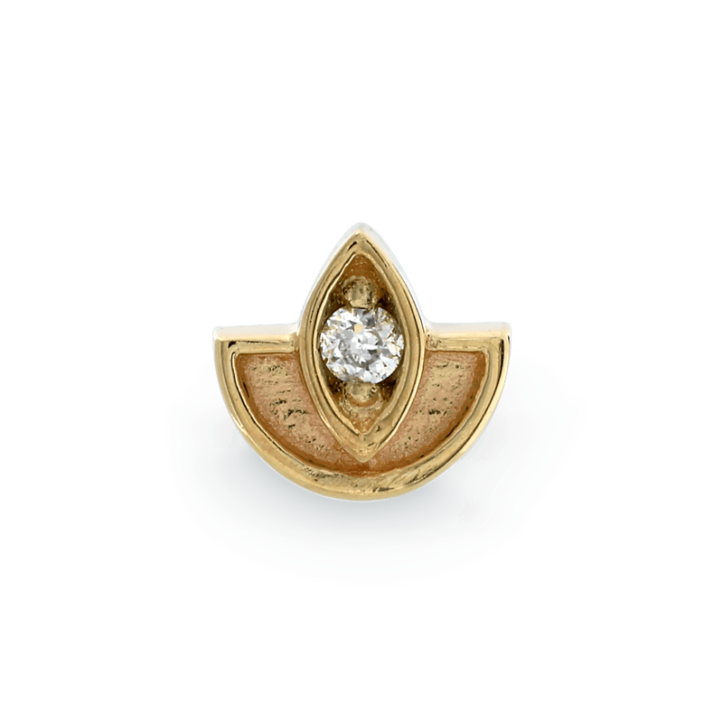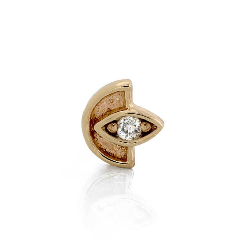 Size: 4.1mm x 4.3mm Material: solid 14k gold Gemstone: Faceted Round Diamond |