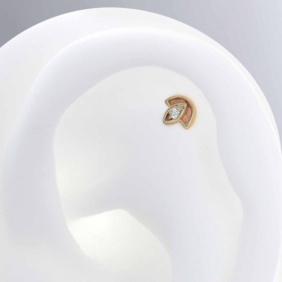Fits any threadless post. If you buy it with a post in the options, the post is an 18g 1/4". That's the most common size for a healed ear piercing. |