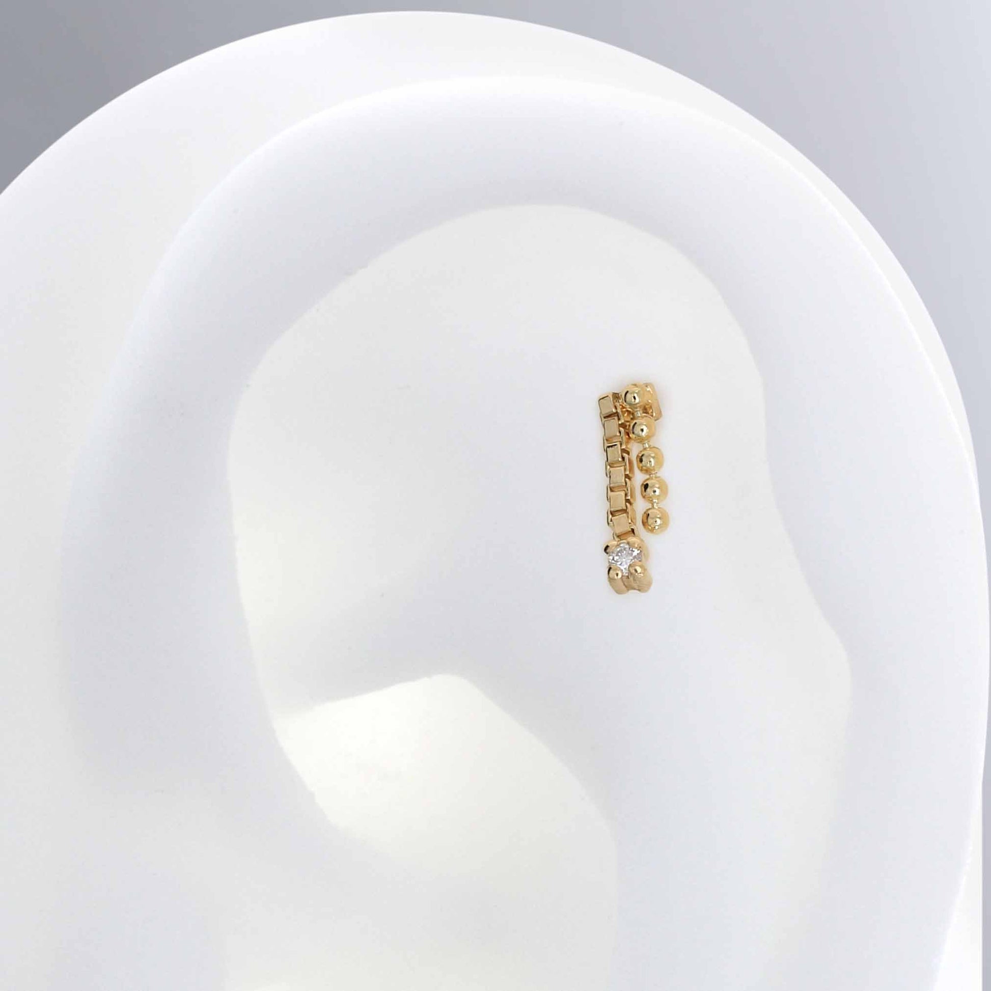The cutest little box chain with an attached diamond and beaded drip beside it