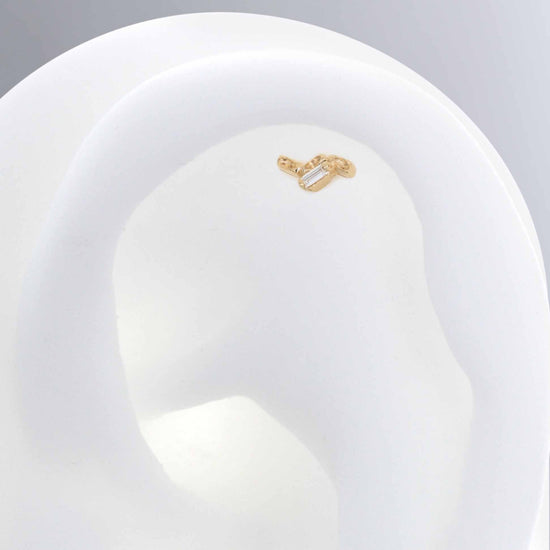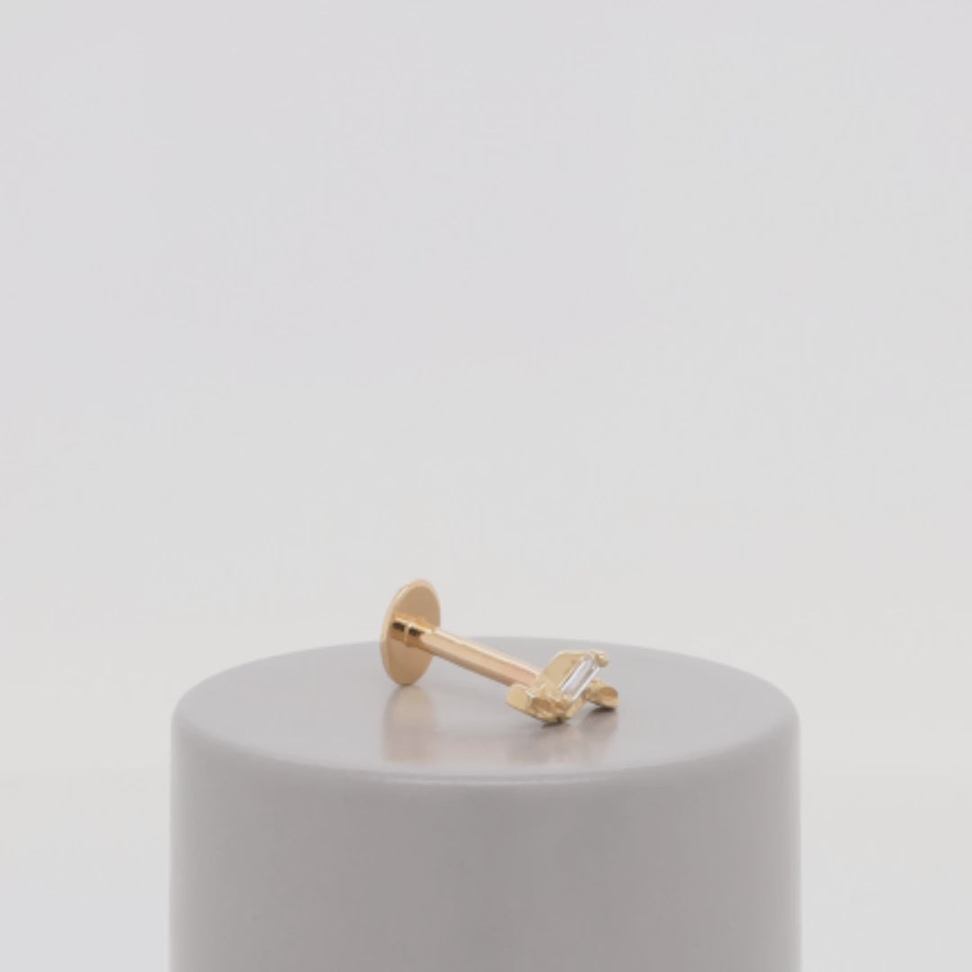 Size: 2.5mm x 5mm Material: 14k Gold Gemstone cut: Baguette Diamond |