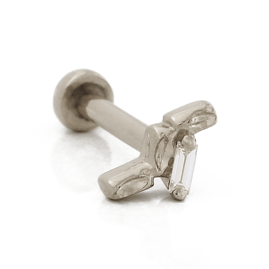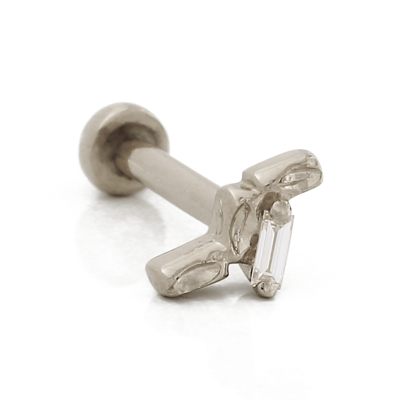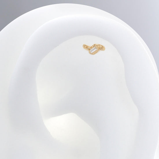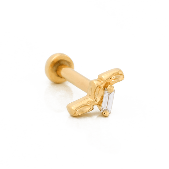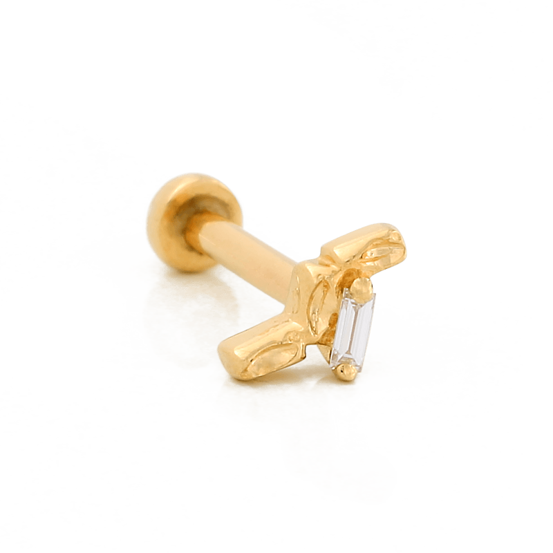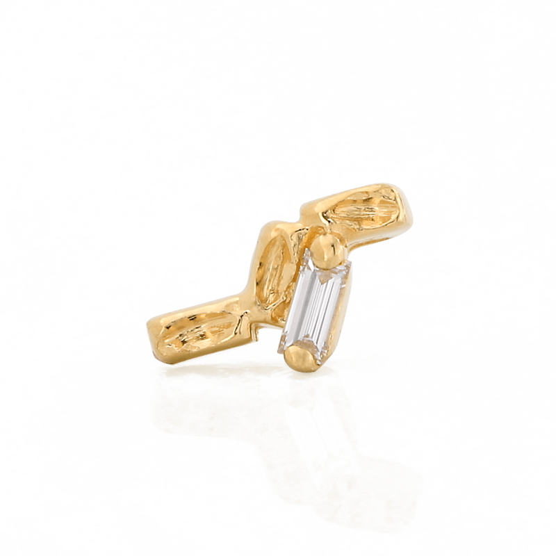14k Solid gold Baguette Bars is a combo of texture Gold and a single Baguette Diamond.