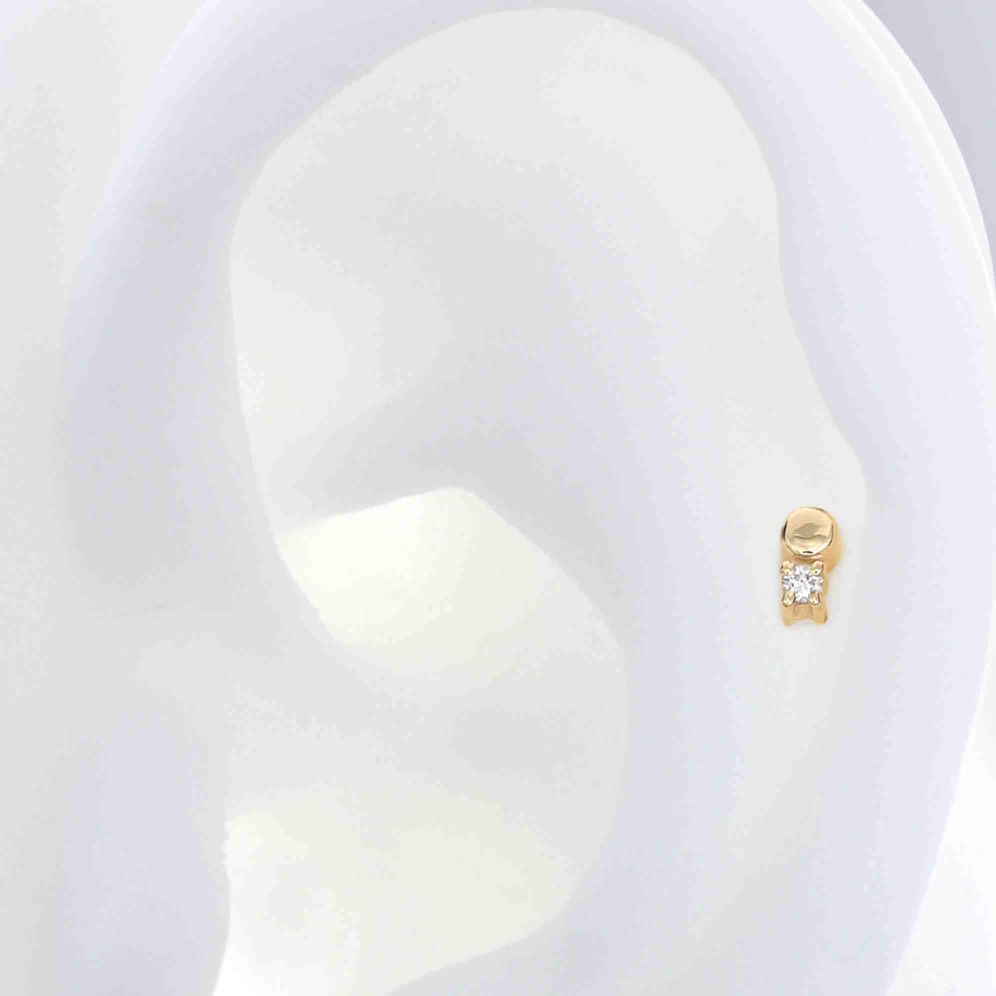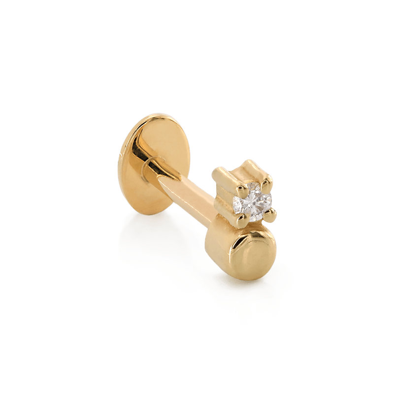 14k Solid gold Gold Dotted Diamond is a round diamond paired with a tiny dot of gold.