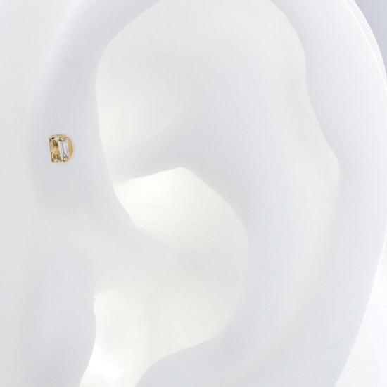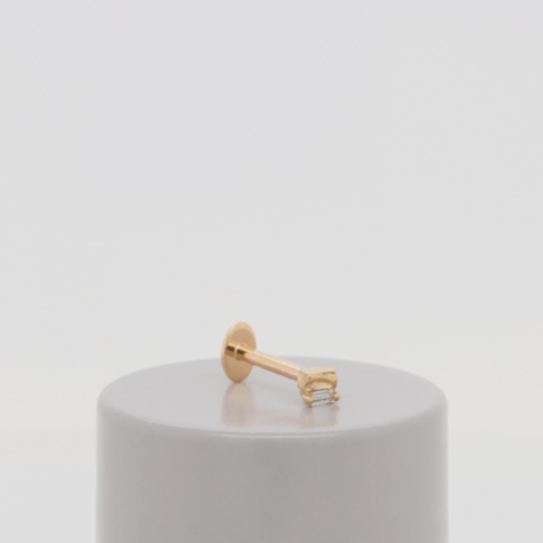 Size: 2.2mm x 2.6mm Material: 14k Gold Gemstone cut: Baguette Diamond |