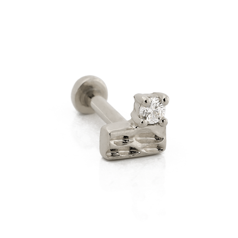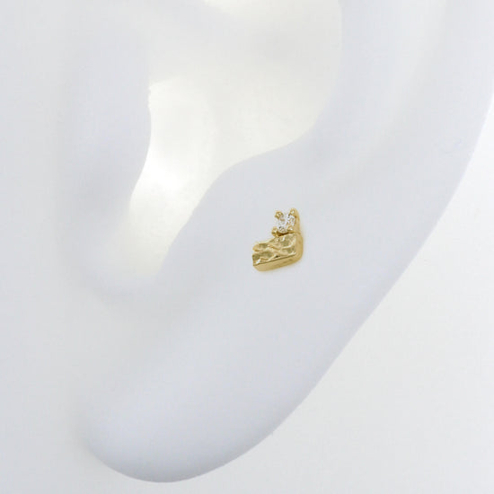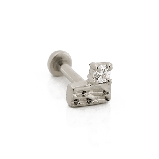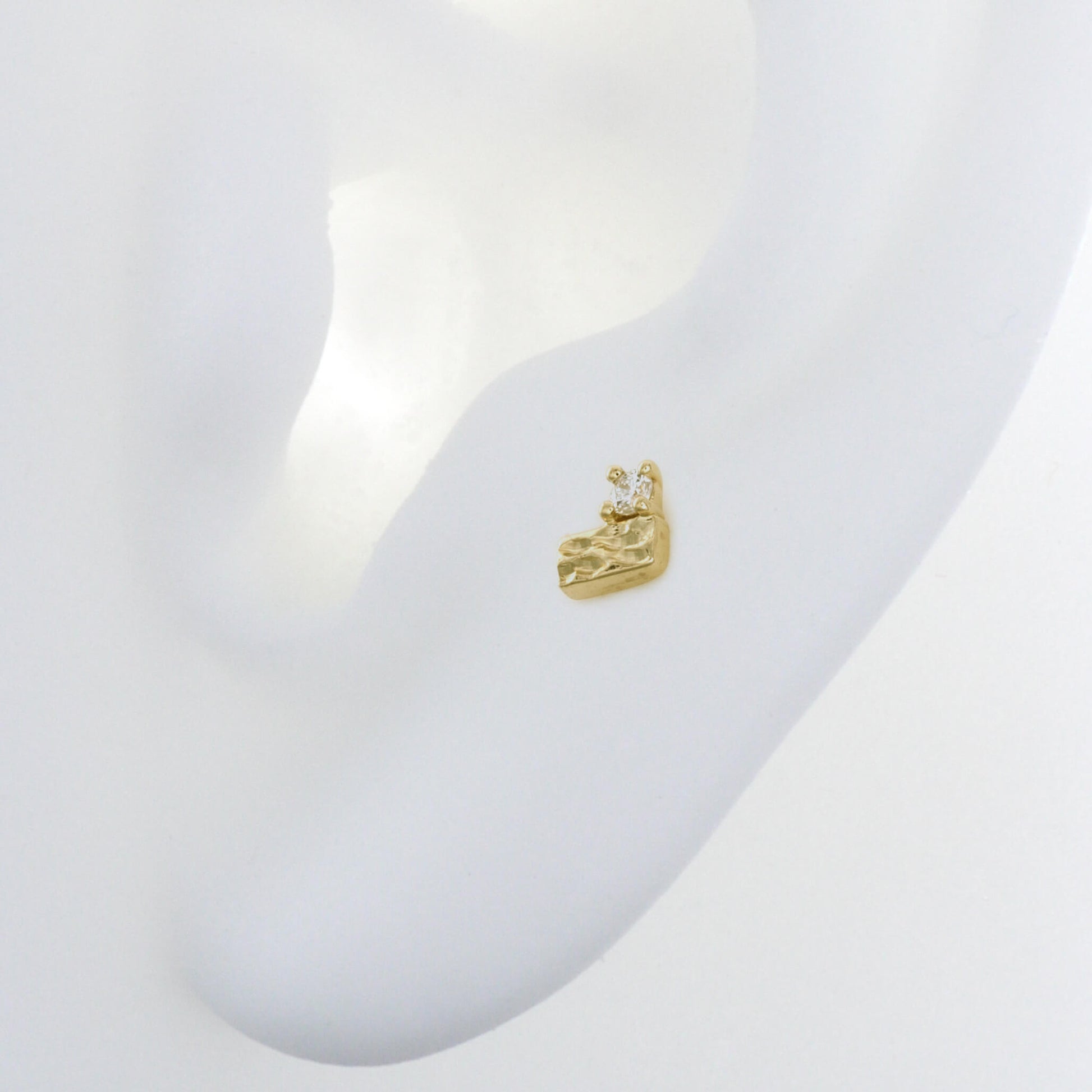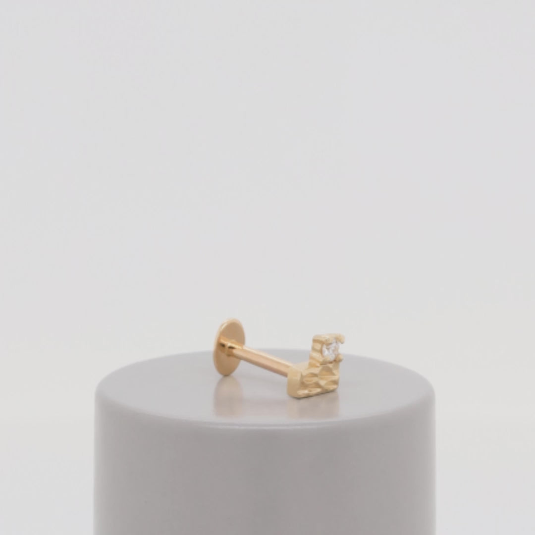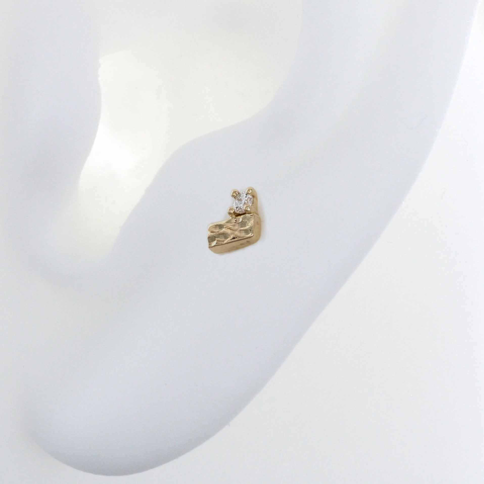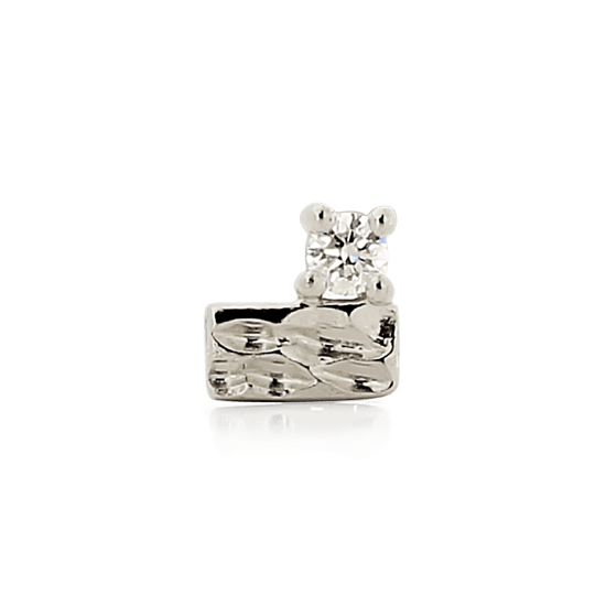 14k Solid gold Baguette On Top is a textured bar paired with a single round Diamond.