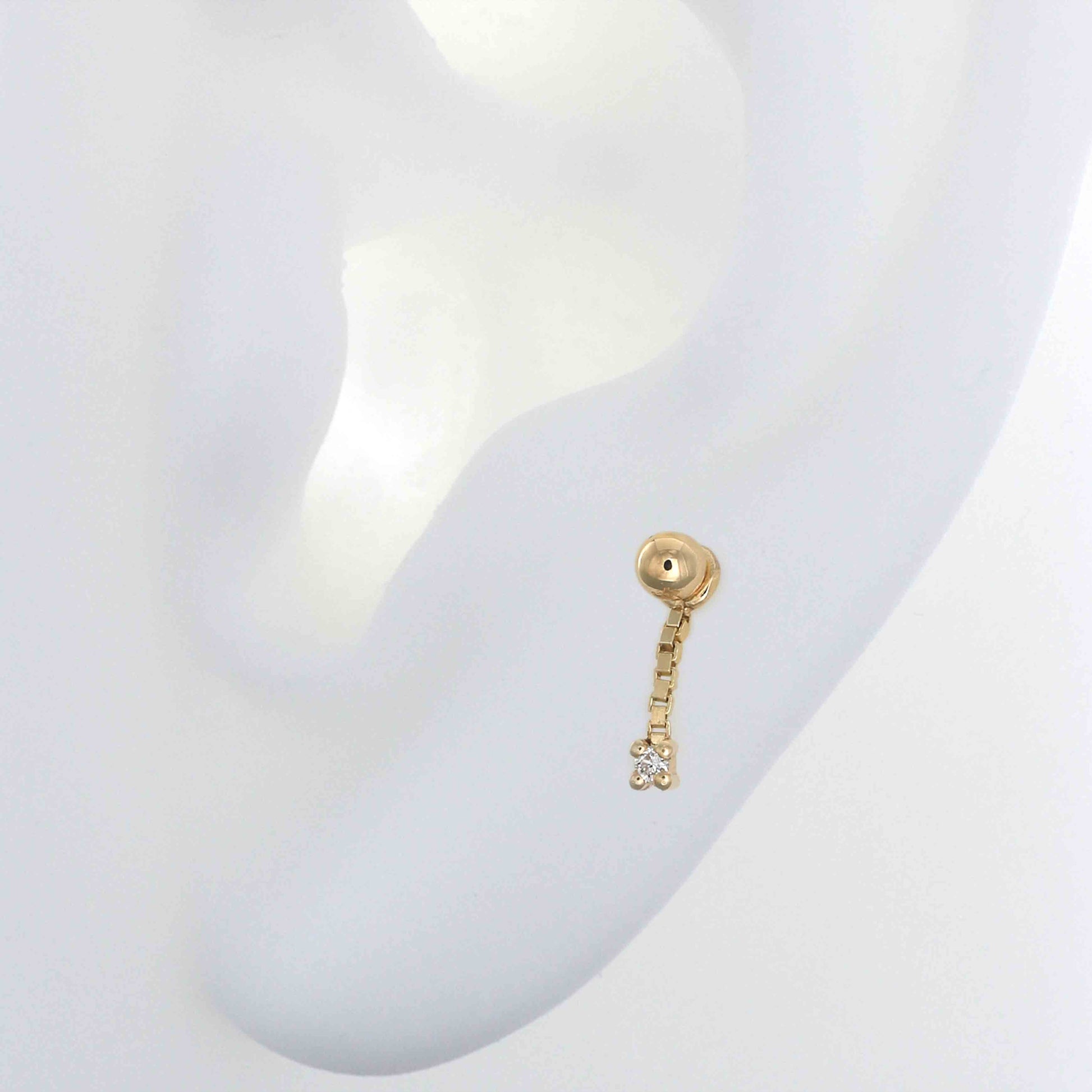 Size: Fits over any traditional earring, 18g or 16g post Material: Solid 14k gold Gemstone: genuine white diamond