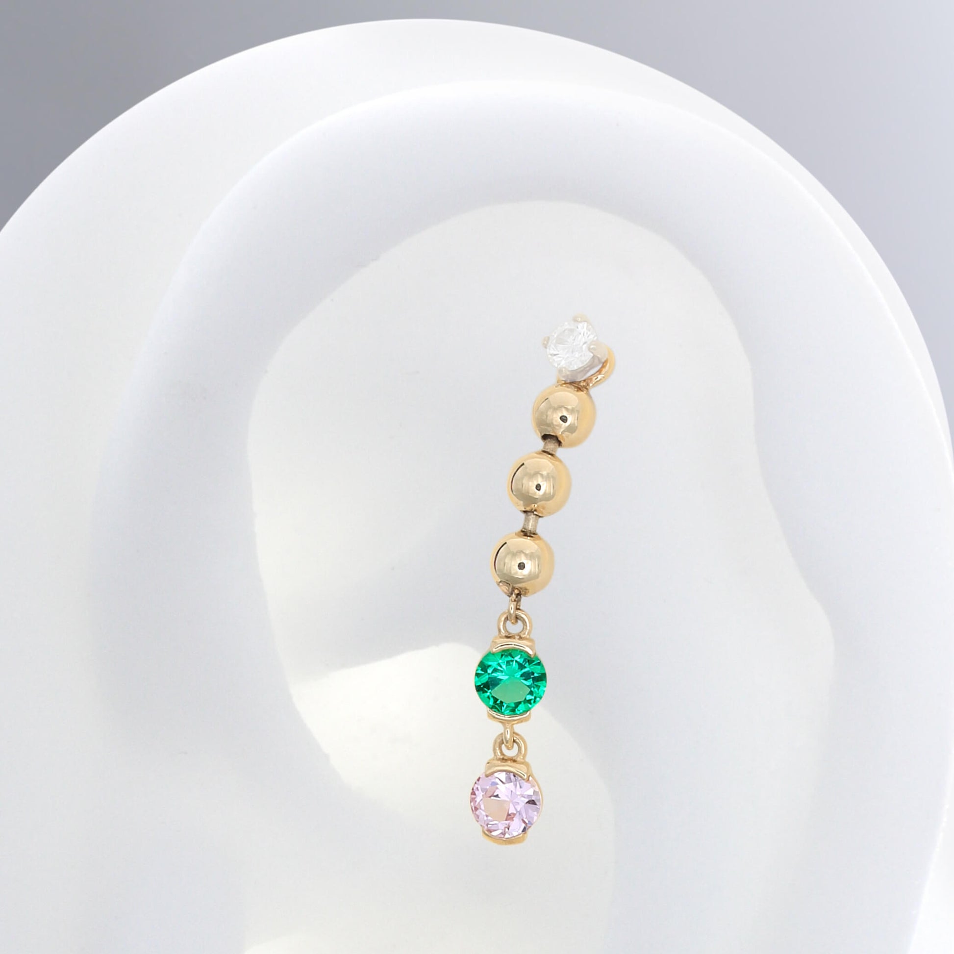 Size: Fits over any traditional earring, 18g or 16g post Material: Solid 14k gold Gemstone: Faceted Round |