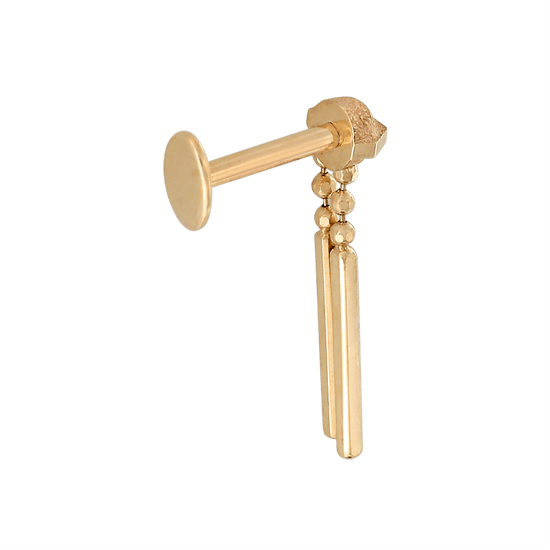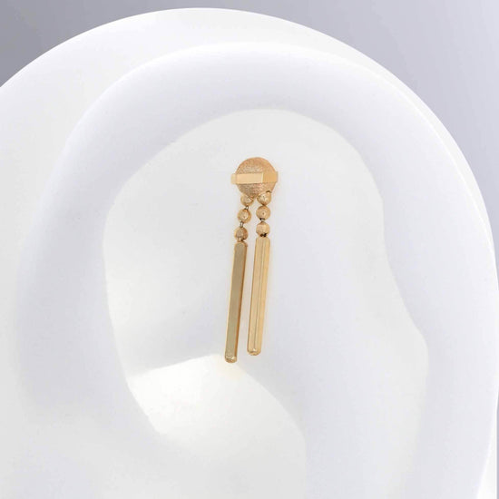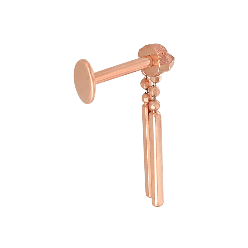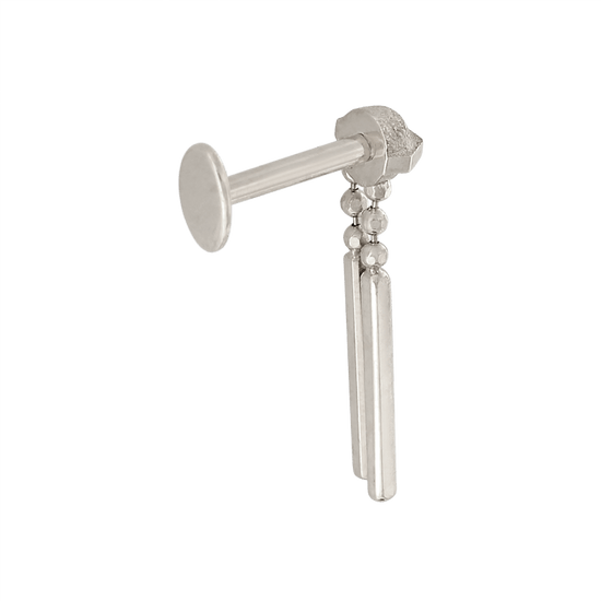 Fits any threadless post. If you buy it with a post in the options, the post is an 18g 1/4". That's the most common size for a healed ear piercing. |