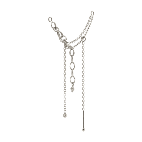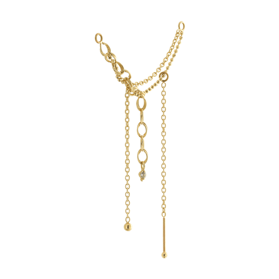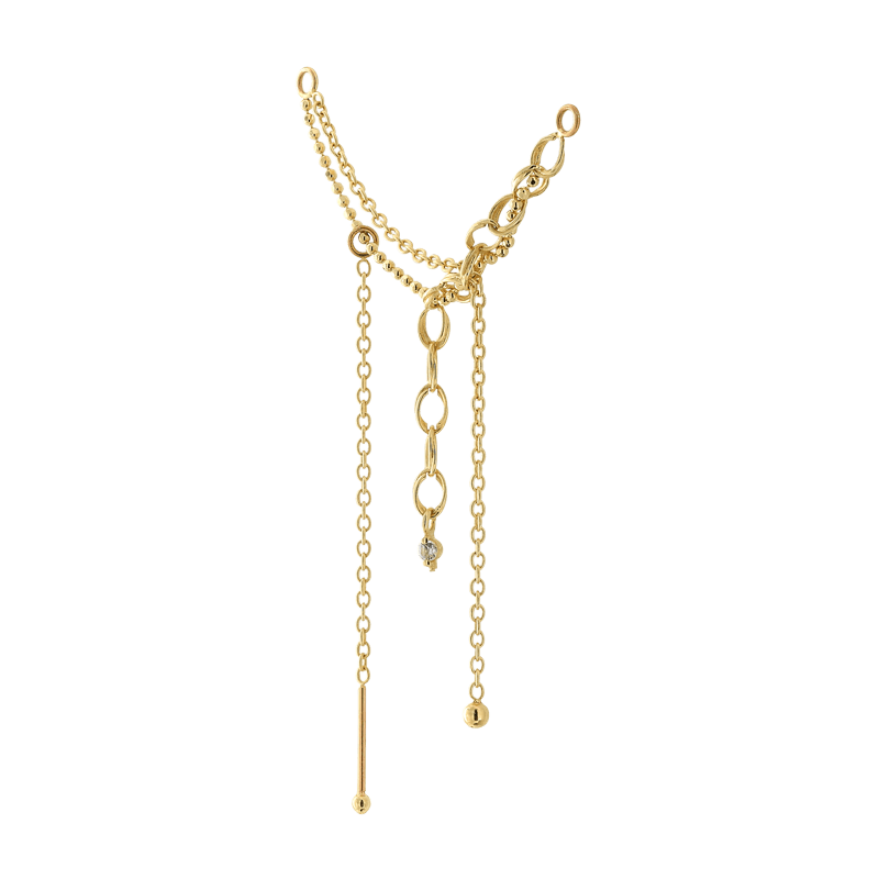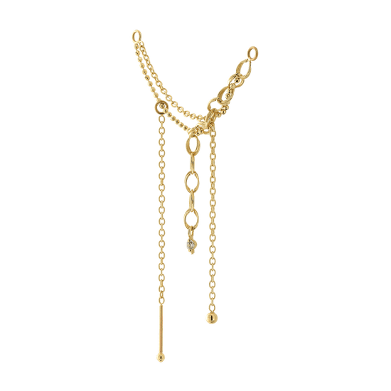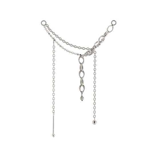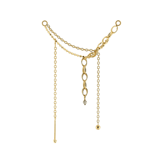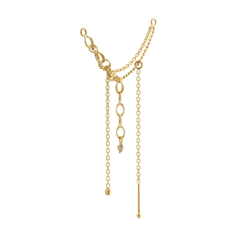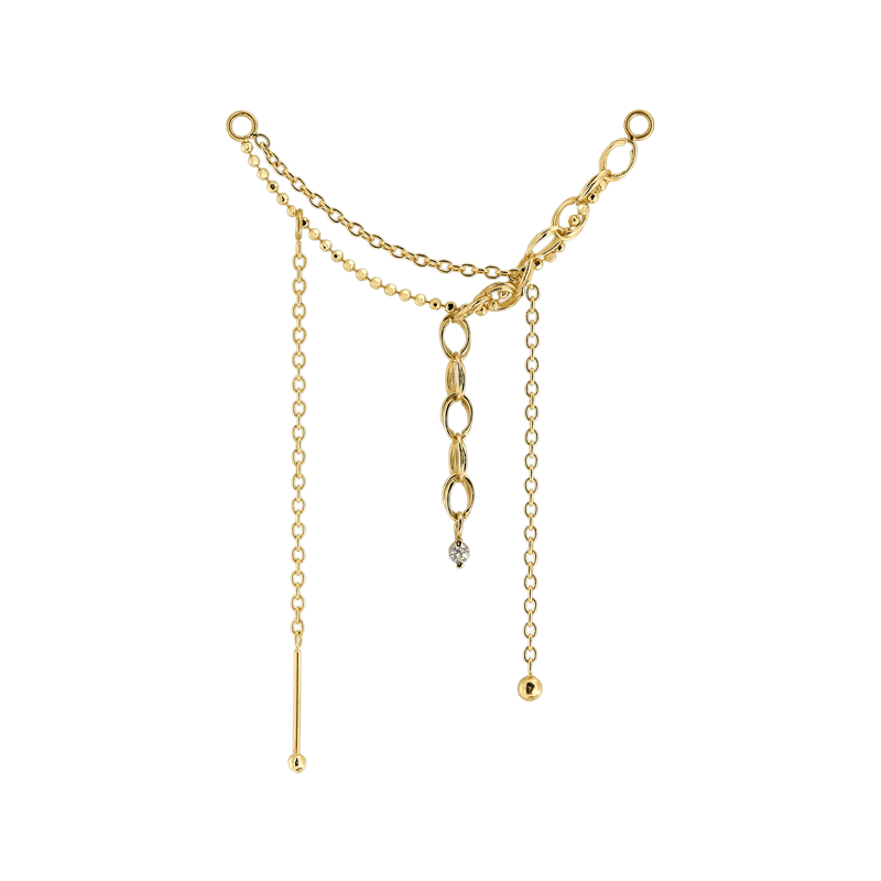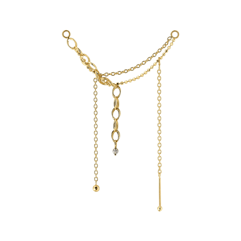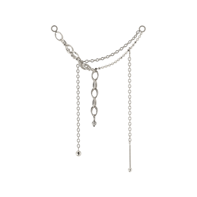 Use this collection of chains to connect two piercing together or look it around to look like a hoops with some dangles.