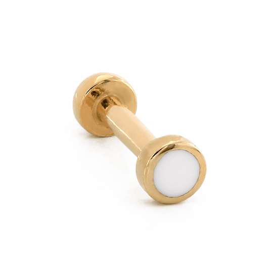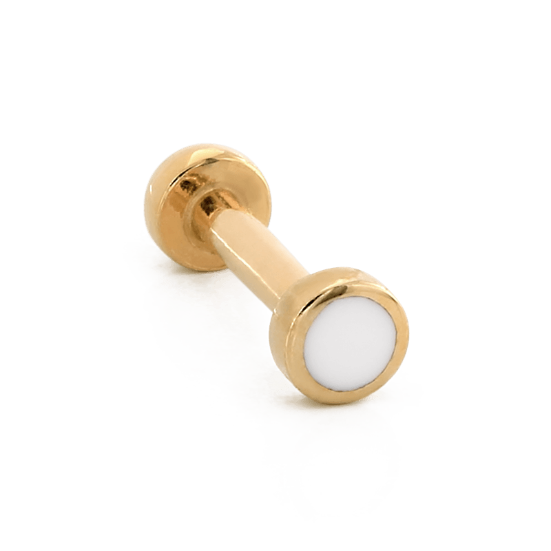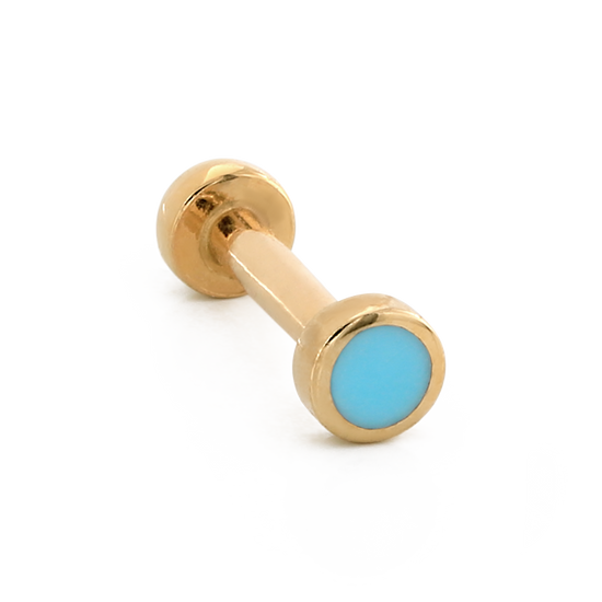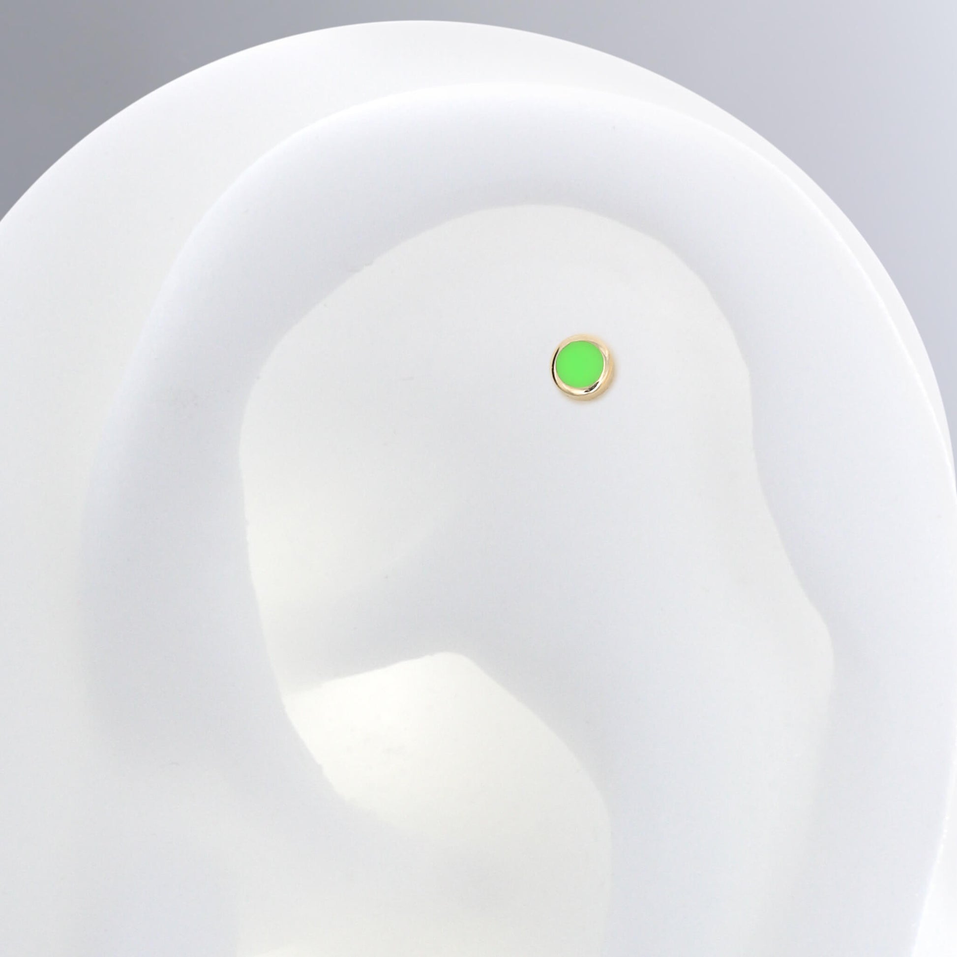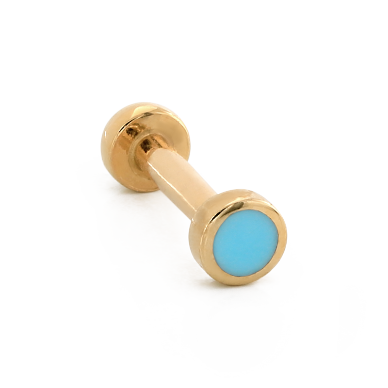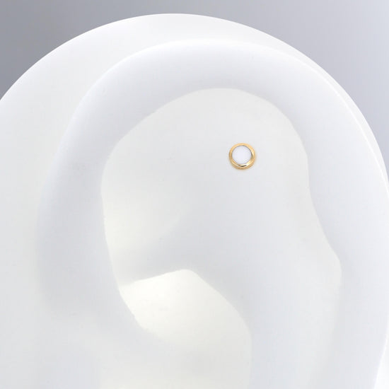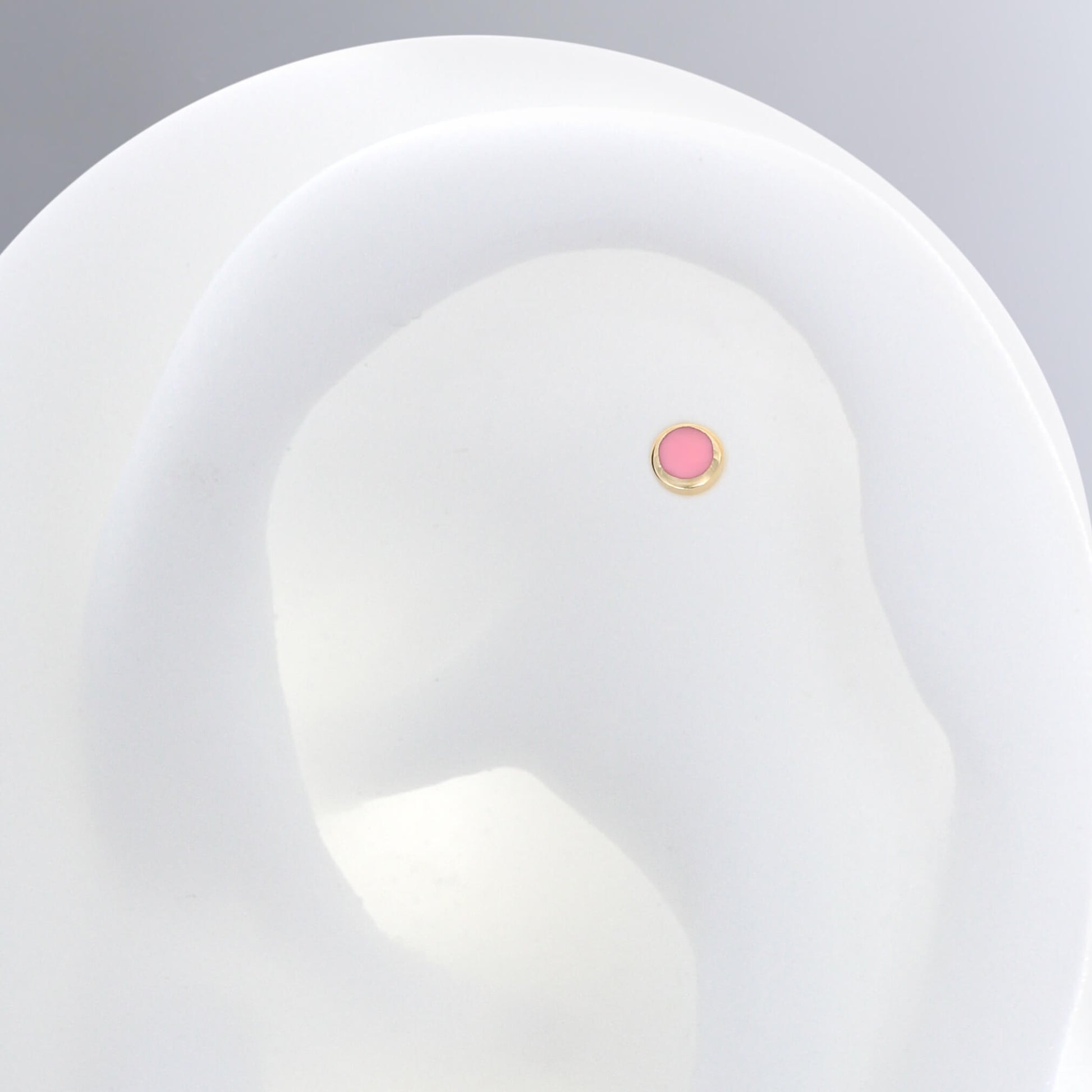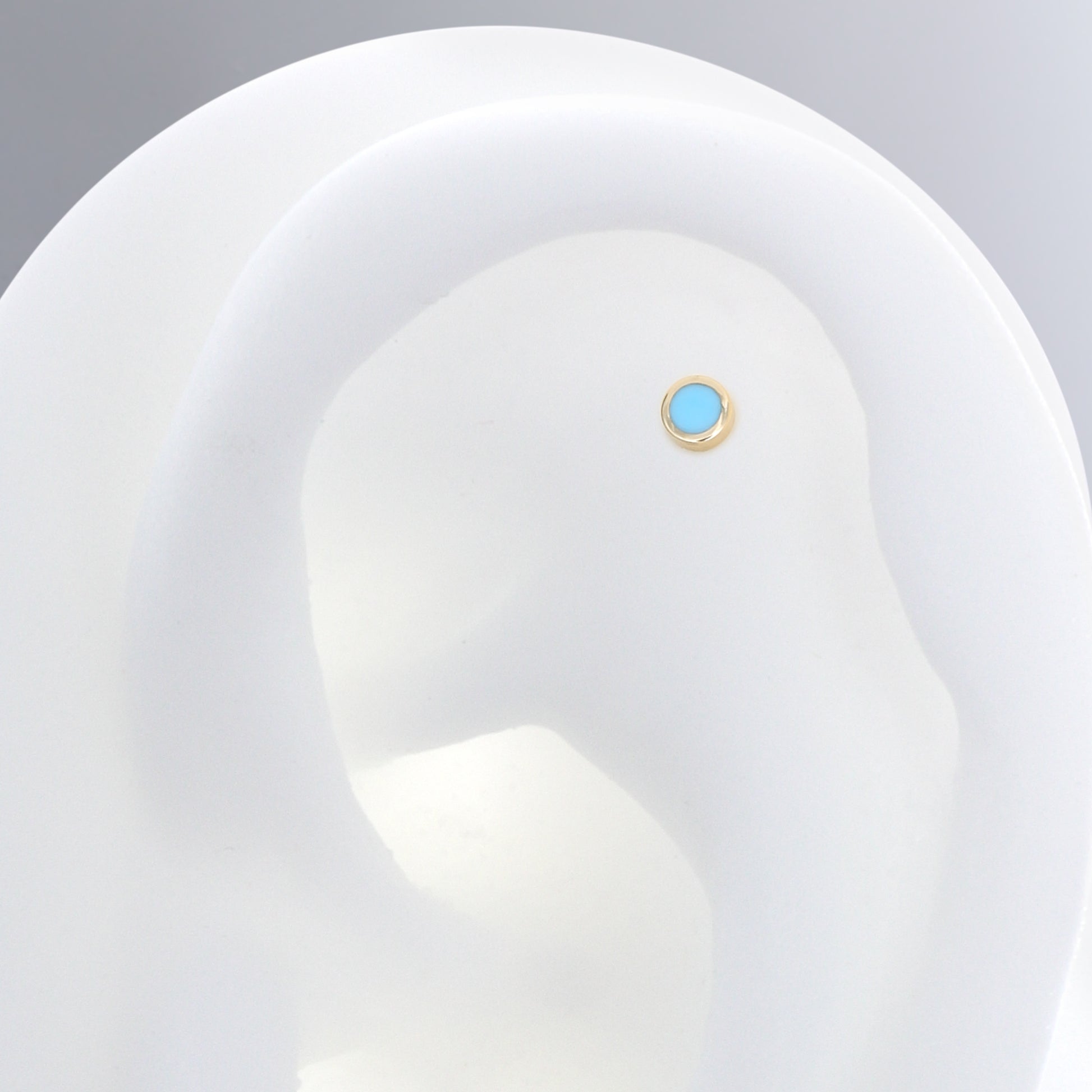 Fits any threadless post. If you buy it with a post in the options, the post is an 18g 1/4". That's the most common size for a healed ear piercing. |