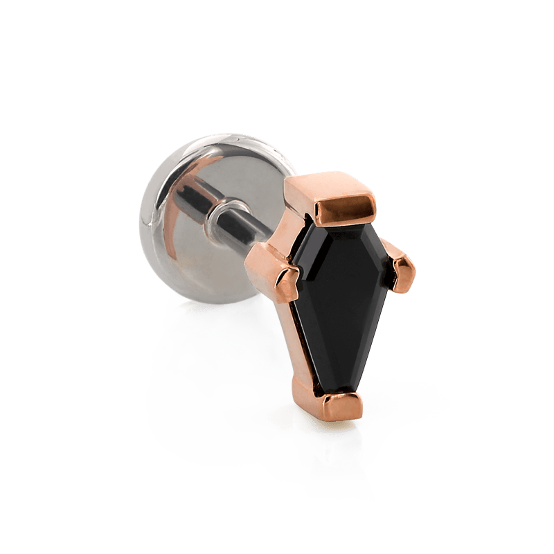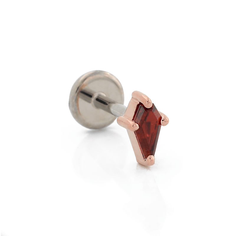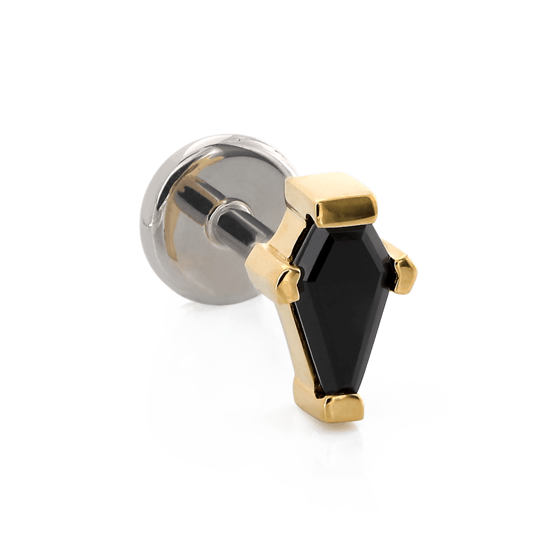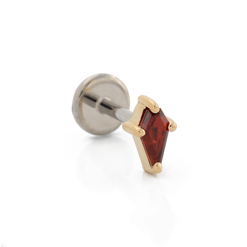 Size: 18g/16g 4.5x2.5mm Material: 14k Solid Gold Gemstone cut: Faceted Coffin |