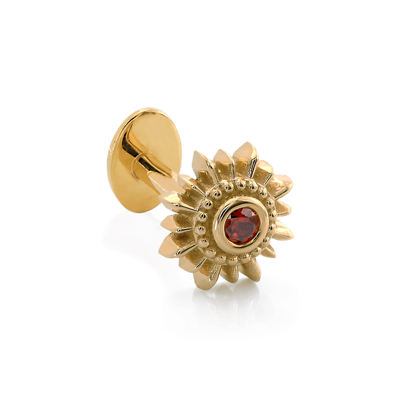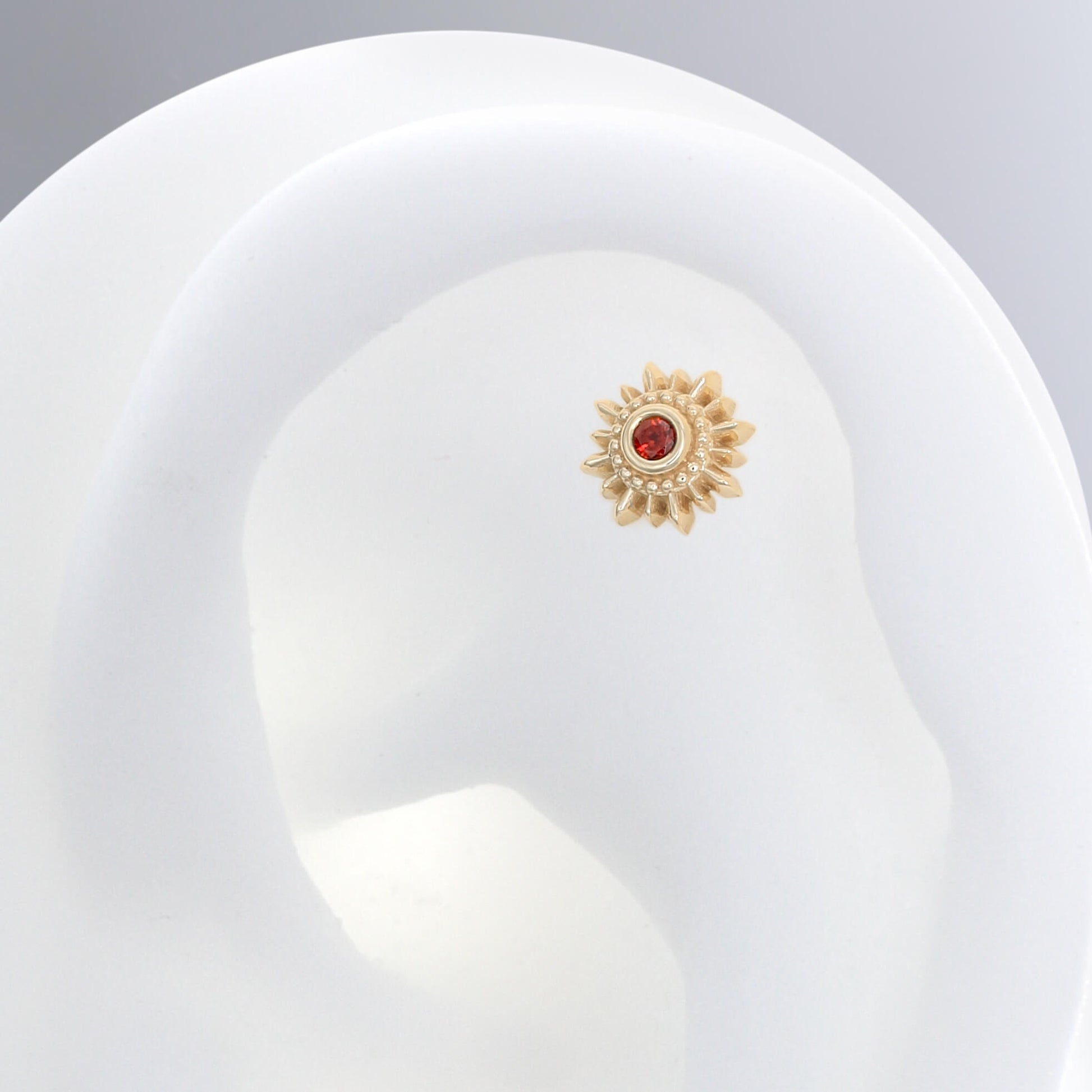 Size: 6mm Material: solid 14k gold Gemstone: 1.5mm; Faceted Round, Round Cabochon |