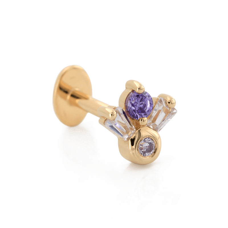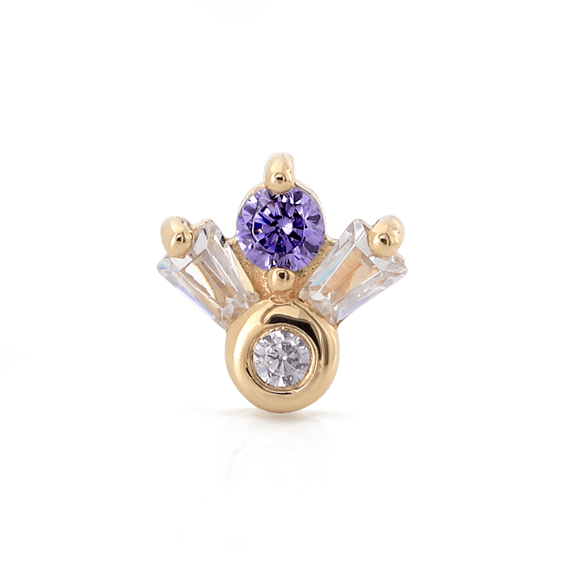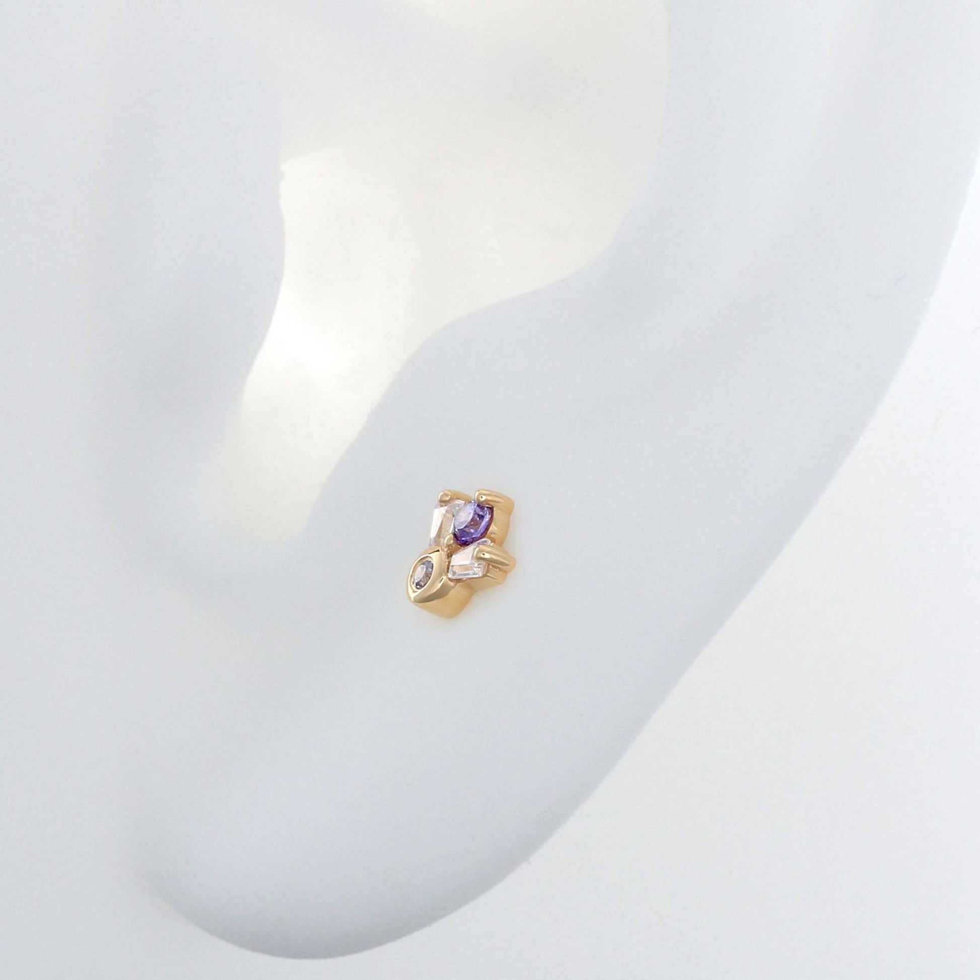 Size: 5.1mm x 5.2mm Material: solid 14k gold Gemstone: Round Bezel, Prong Round, 2x Prong Tapered Baguettes |