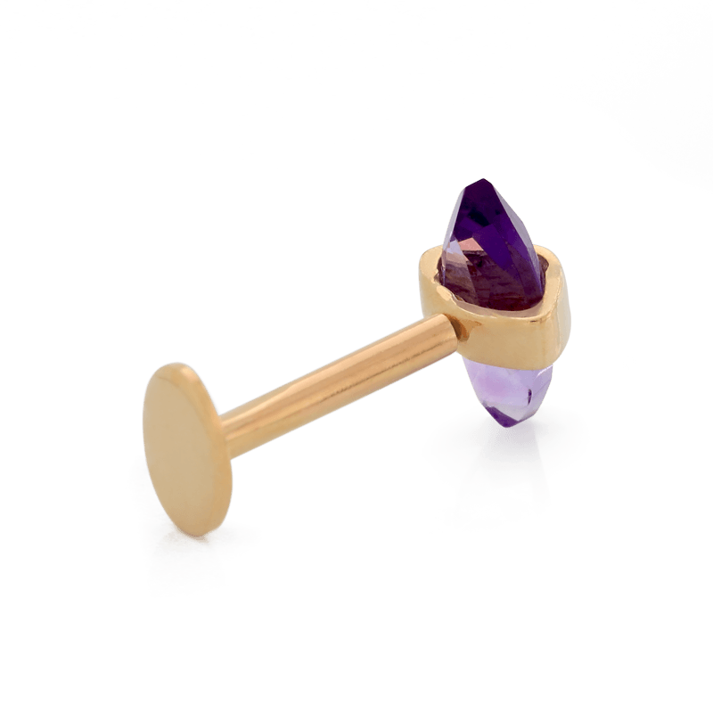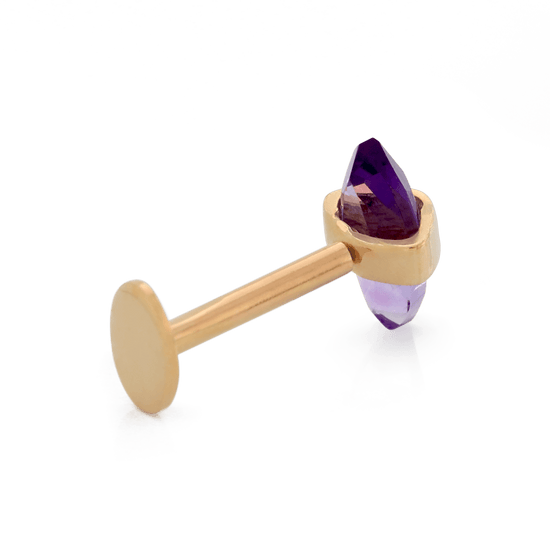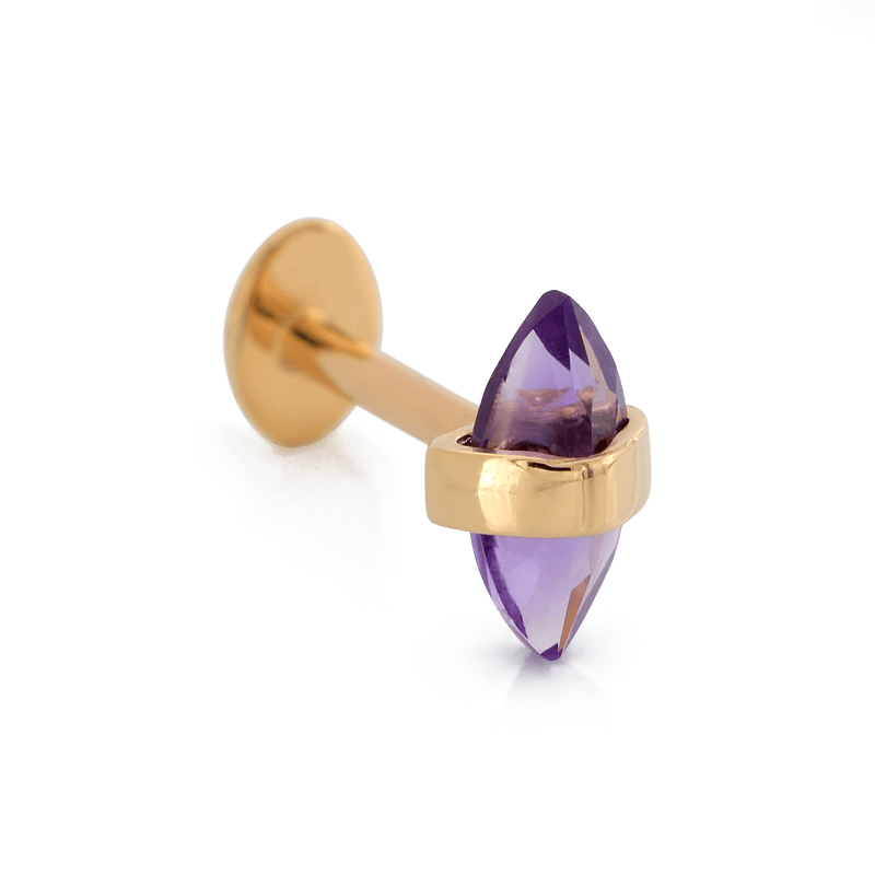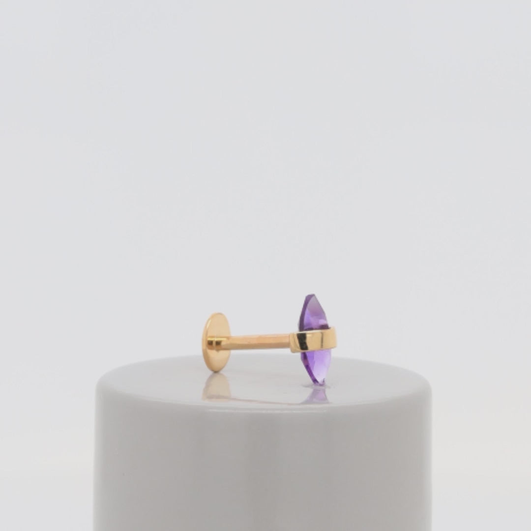 Size: 4mm x 6mm Material: solid 14k gold Gemstone: 3D Faceted Marquise, Amethyst |