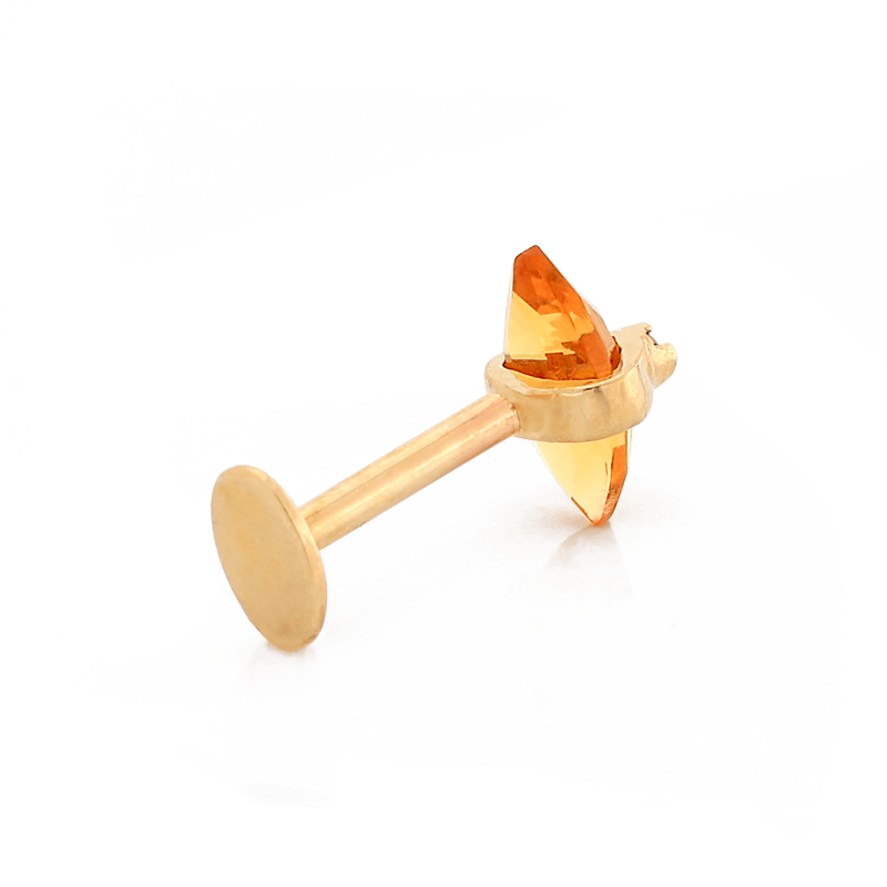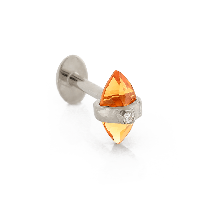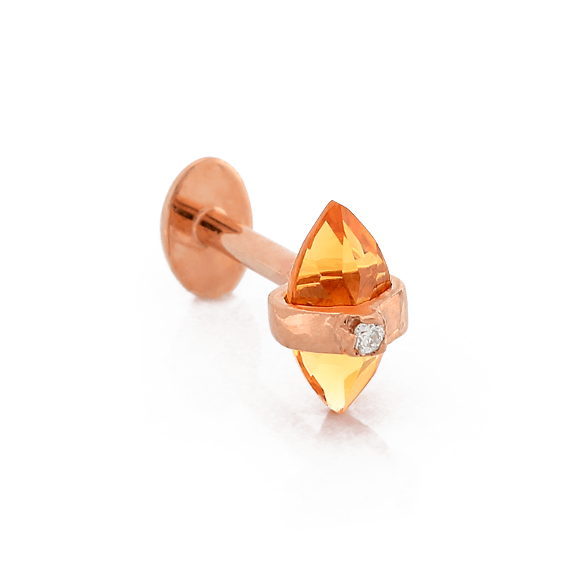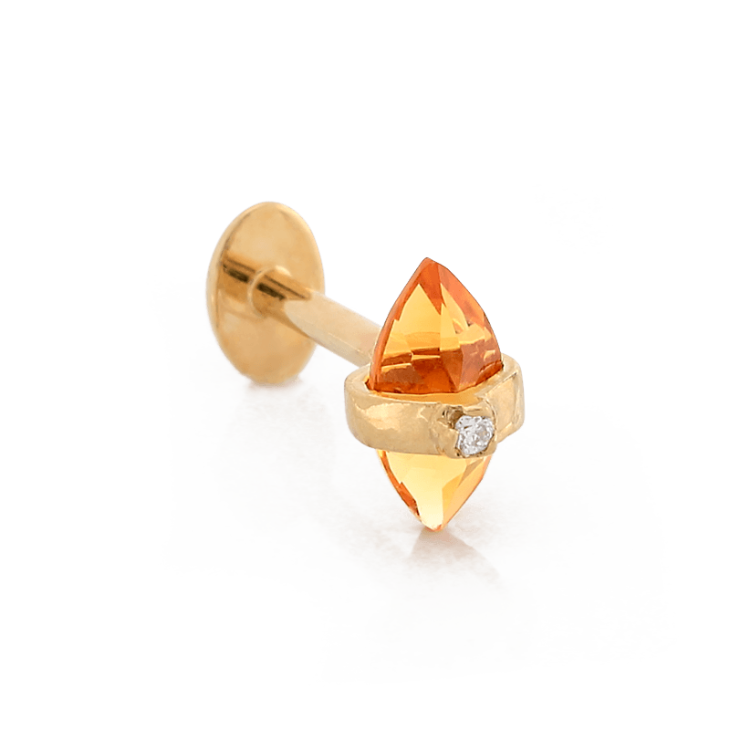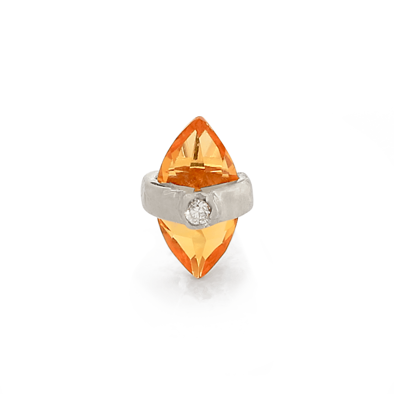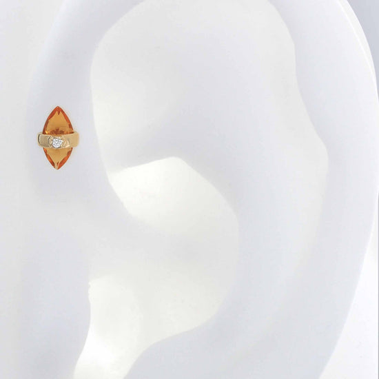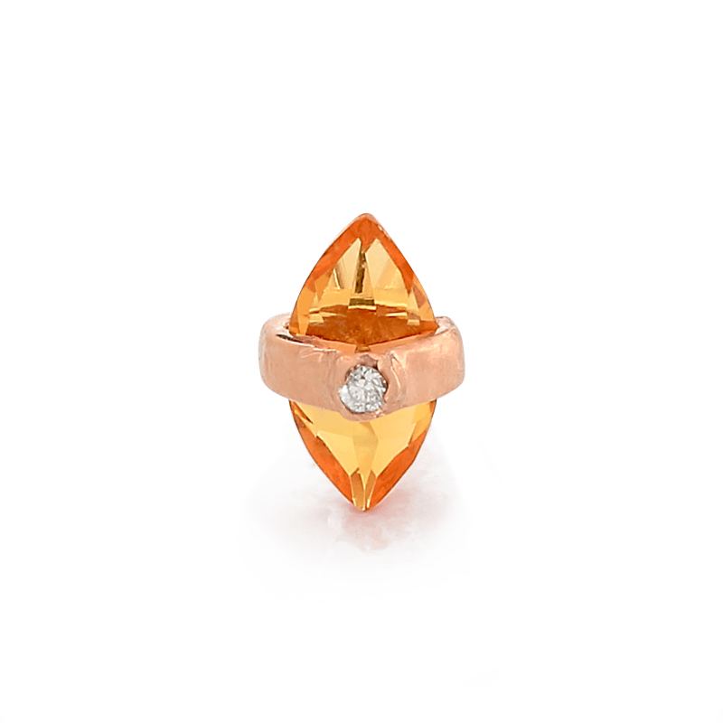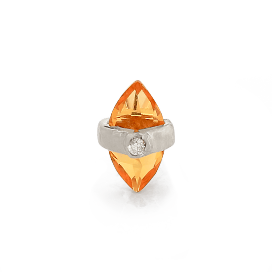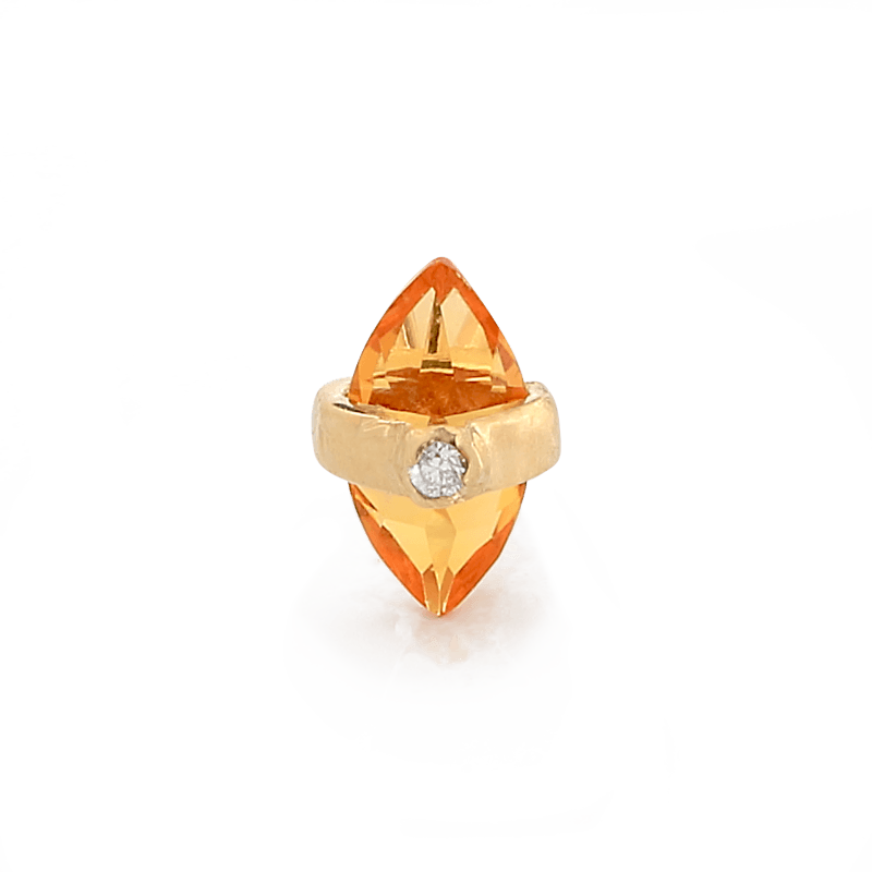 Size: 4mm x 6mm Material: solid 14k gold Gemstone: 3D Faceted Marquise, Citrine; Round Faceted Diamond |