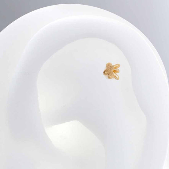 Fits any threadless post. If you buy it with a post in the options, the post is an 18g 1/4". That's the most common size for a healed ear piercing. |