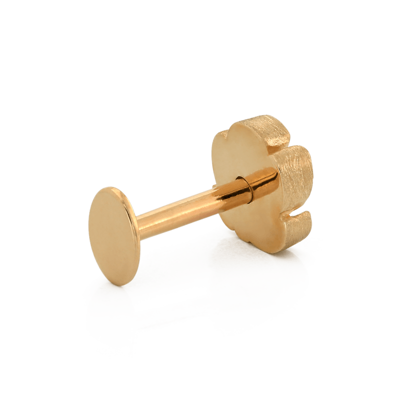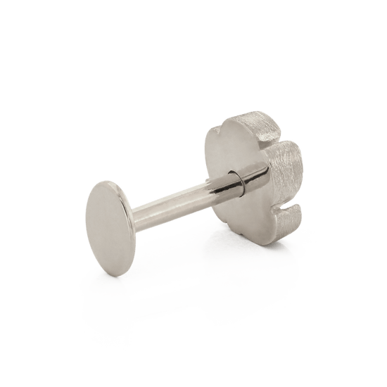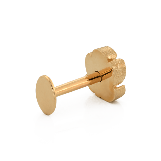 Fits any threadless post. If you buy it with a post in the options, the post is an 18g 1/4". That's the most common size for a healed ear piercing. |