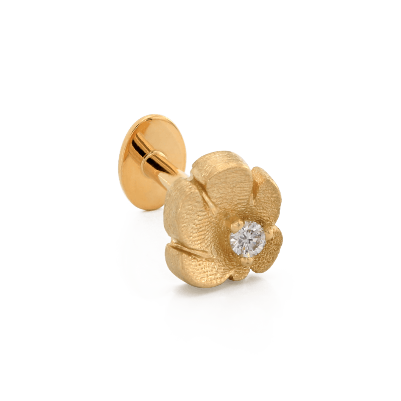 Size: 4.7mm x 5.2mm Material: solid 14k gold Gemstone: Faceted White Diamond |