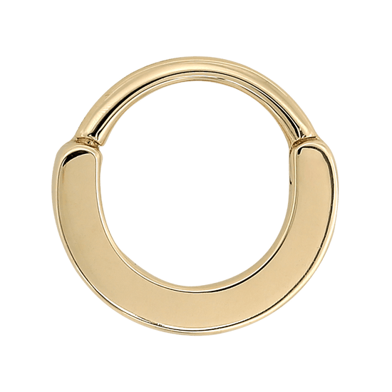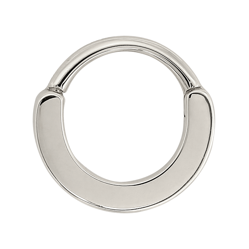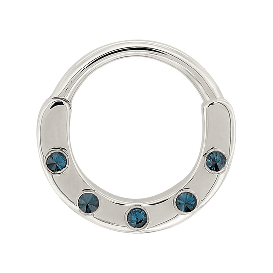 A shield ring housing Reverse-set Faceted Round Diamonds.