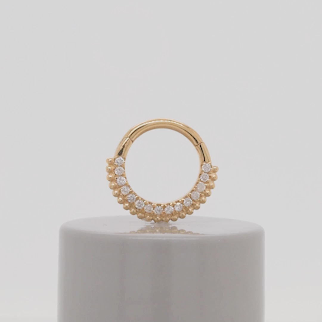 This showstopper is the Diamond and Beads Hinged Ring which has 15 GH-SI diamonds