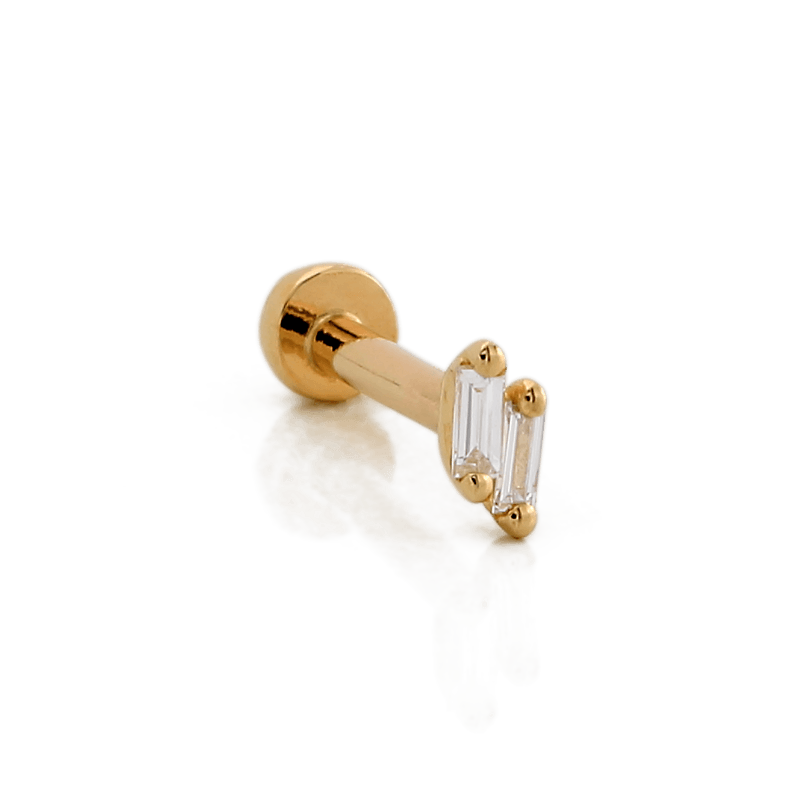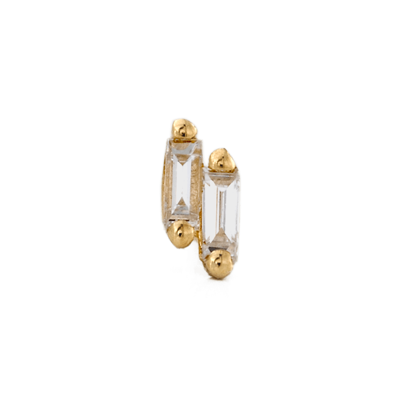 14k Solid gold Double Baguette is a beautiful pairing of two Baguette Diamonds