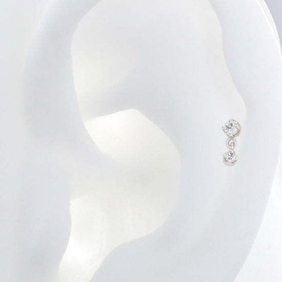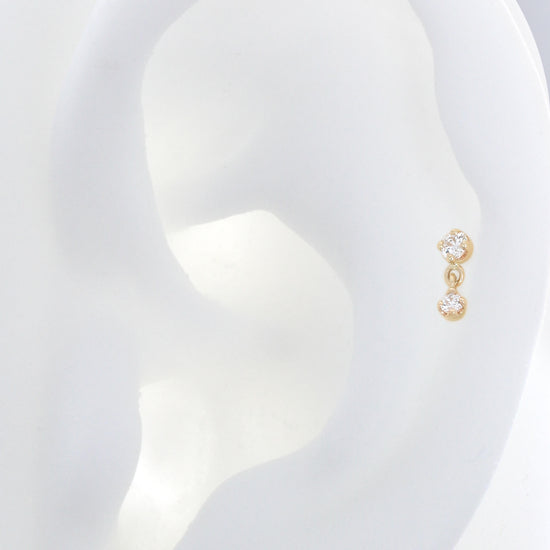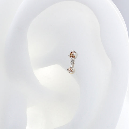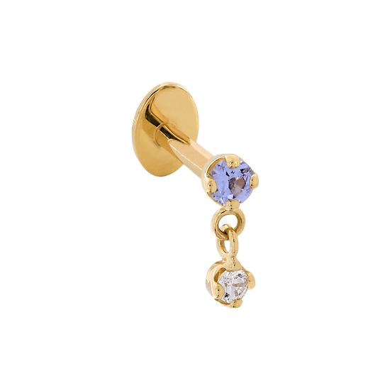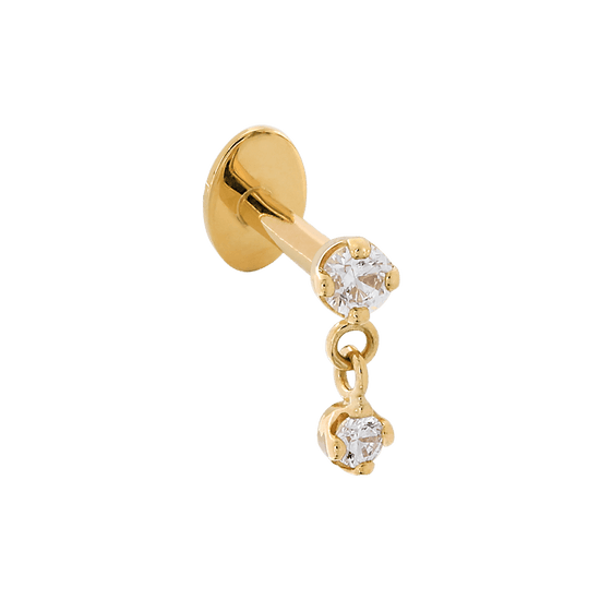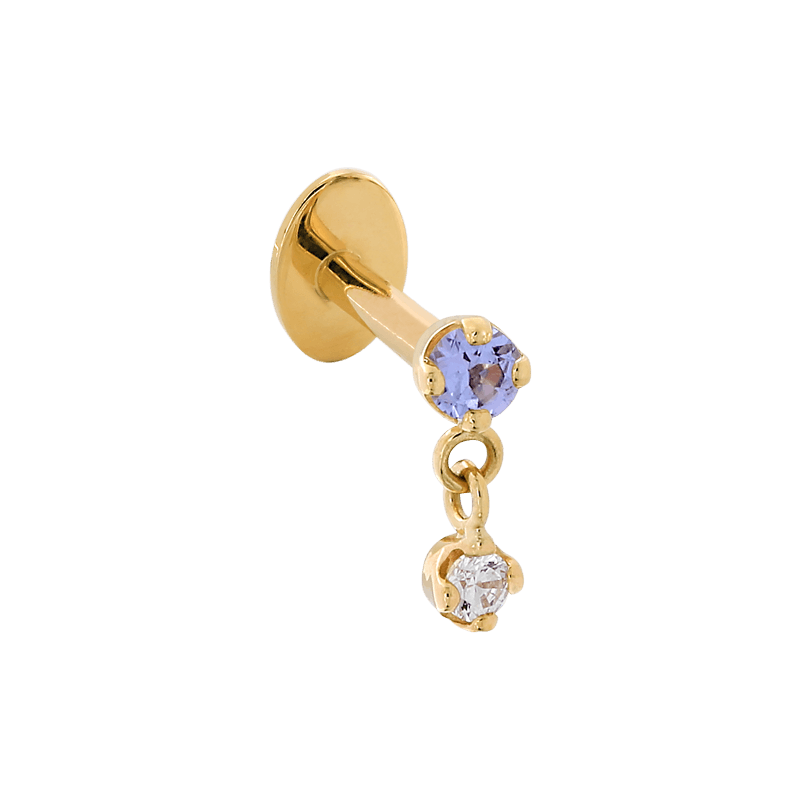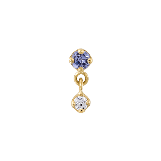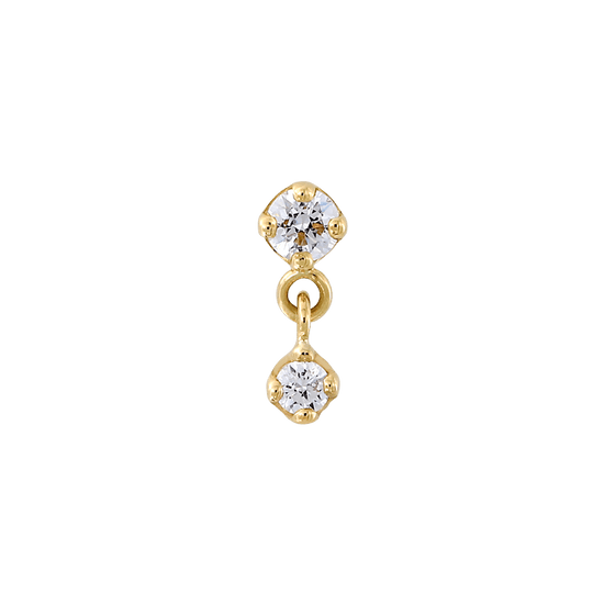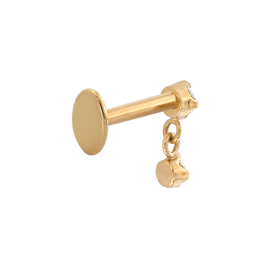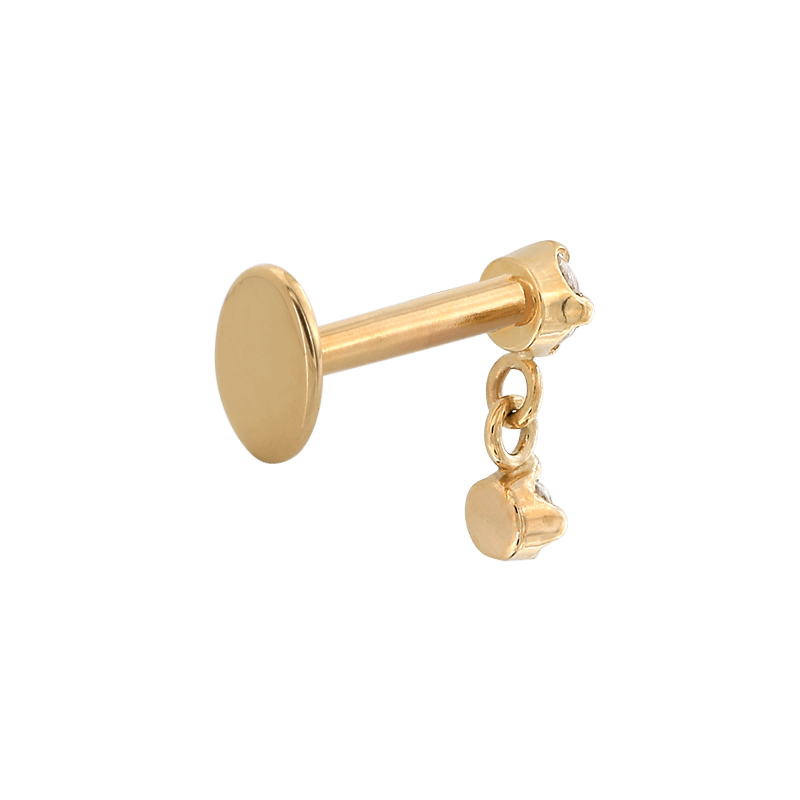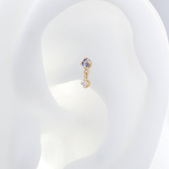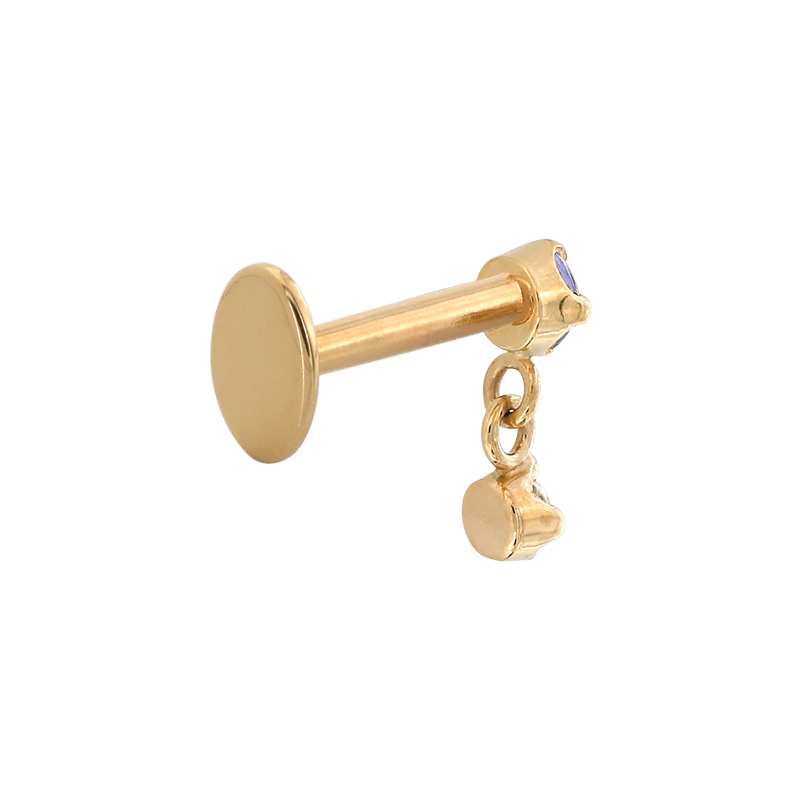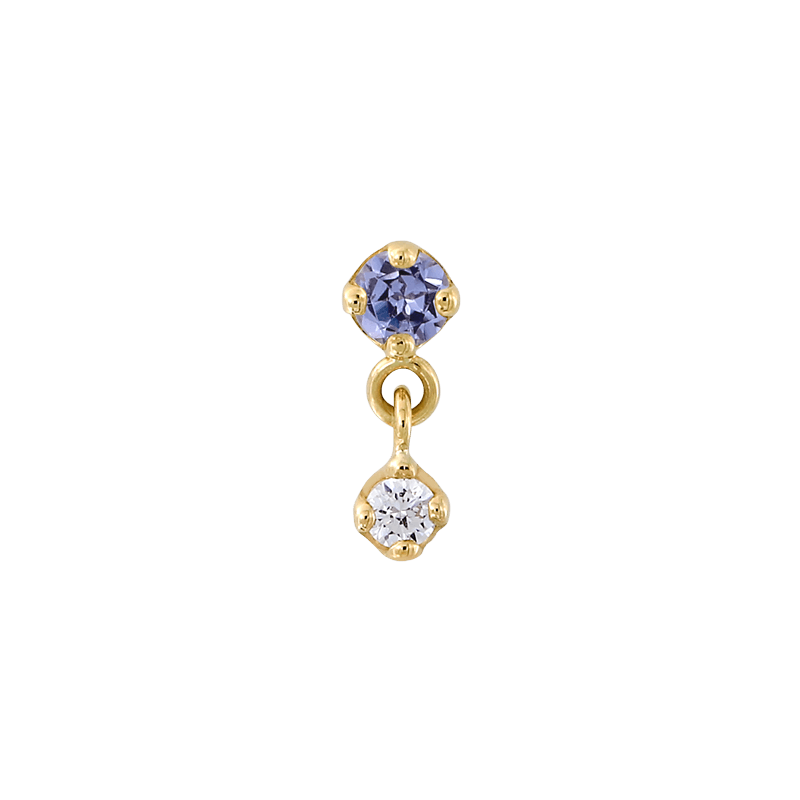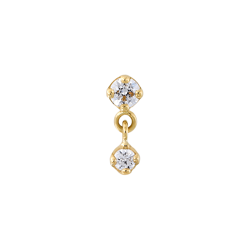 Size: Material: solid 14k gold Gemstone: 2mm w/ 1.5mm dangle; Faceted Round |