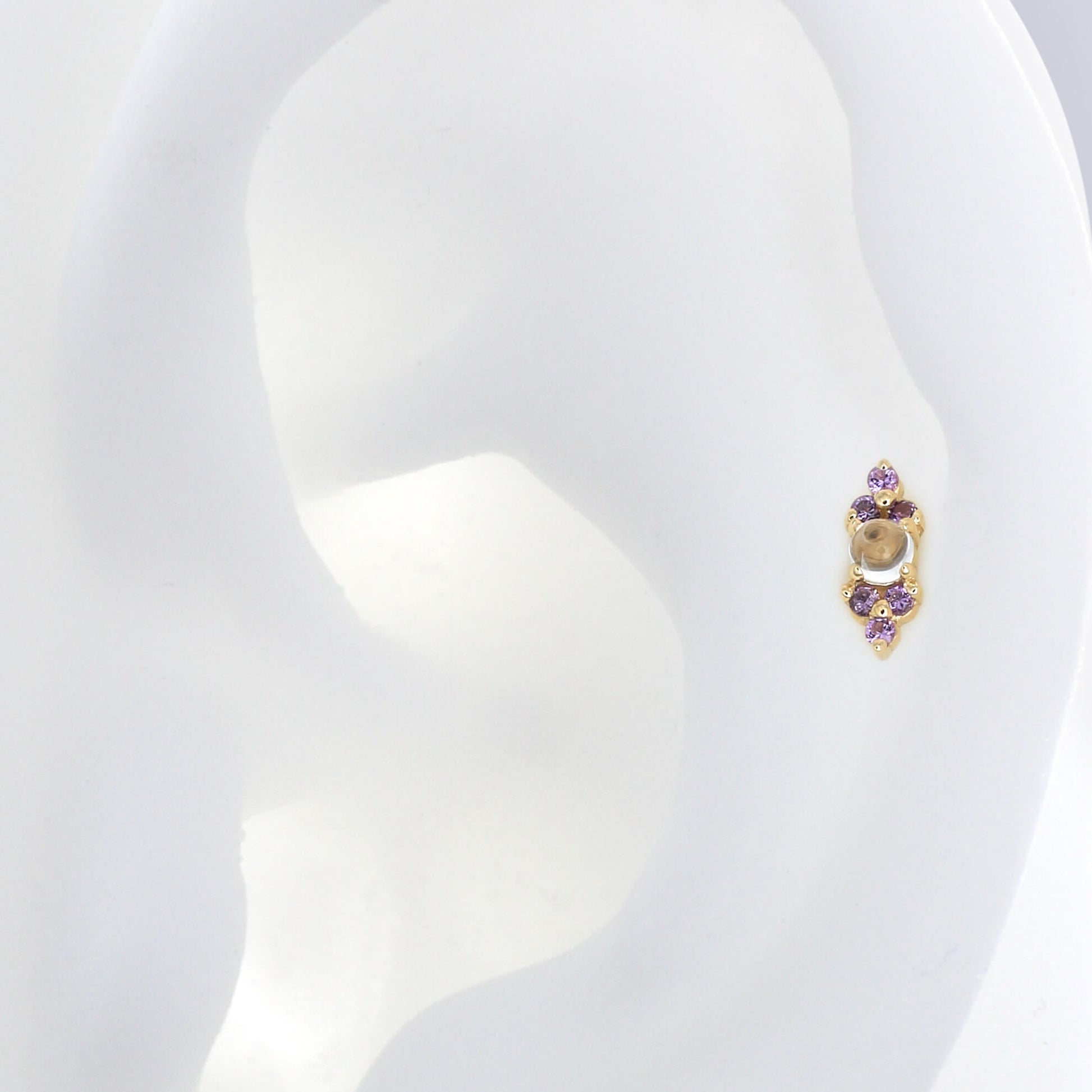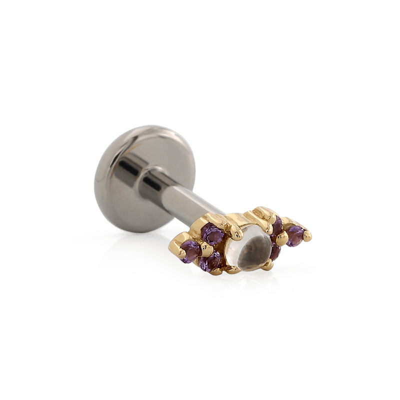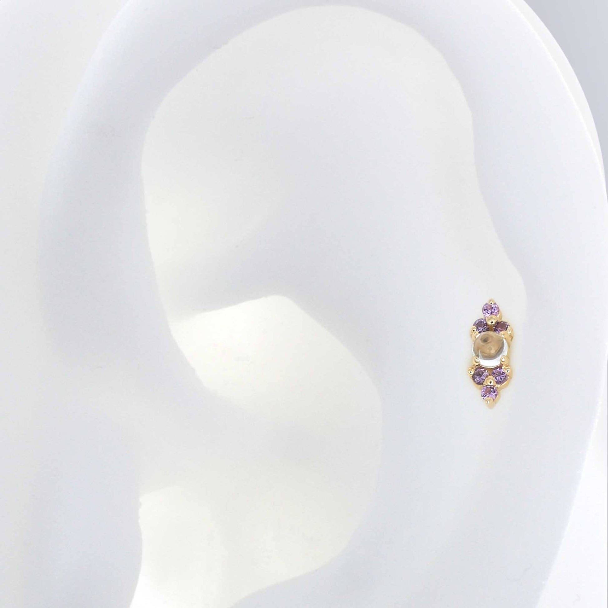 Size: 18g/16g 2.5mm x 6.3mm Material: 14k Solid Gold Gemstone cut: Round Cabochon, Faceted Round |