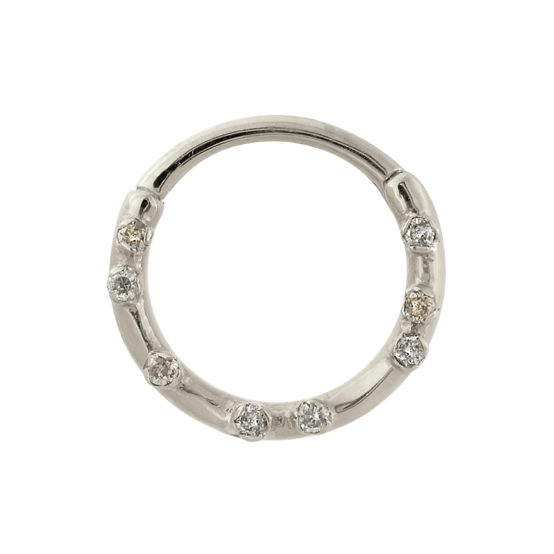 Hinged Easy Ring with forward facing diamonds. Perfect for septum piercings.