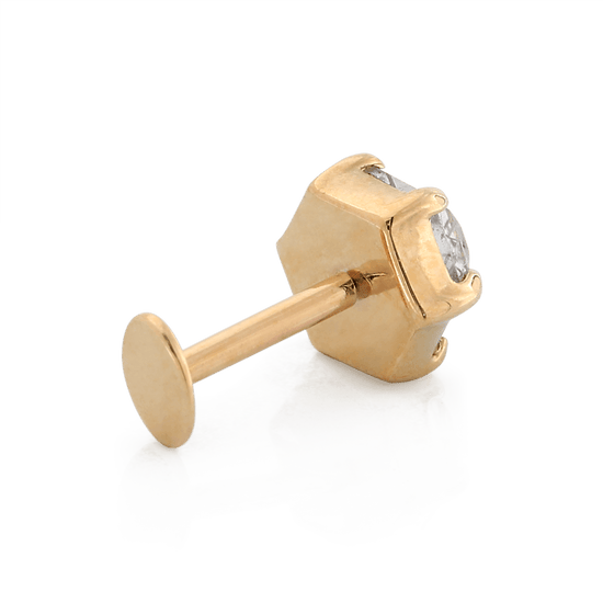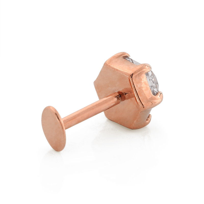 Fits any threadless post. If you buy it with a post in the options, the post is an 18g 1/4". That's the most common size for a healed ear piercing. |
