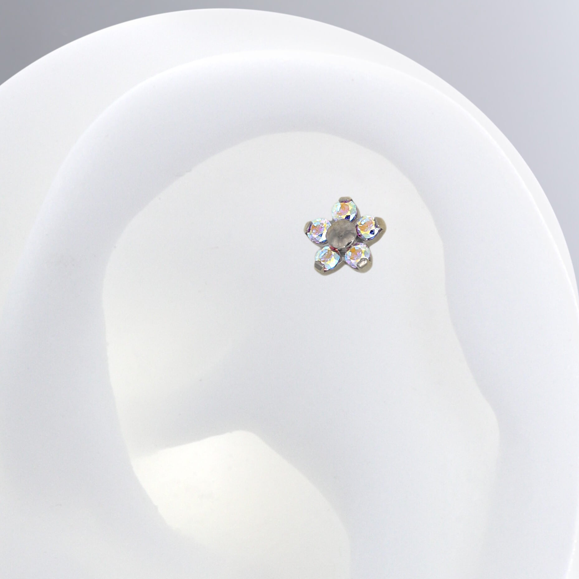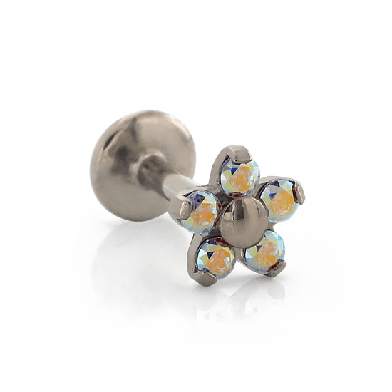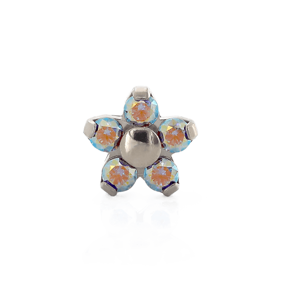 Size: 4.7mm Material: Titanium Gemstones: 5 x 1.5mm Cubic Zirconia |