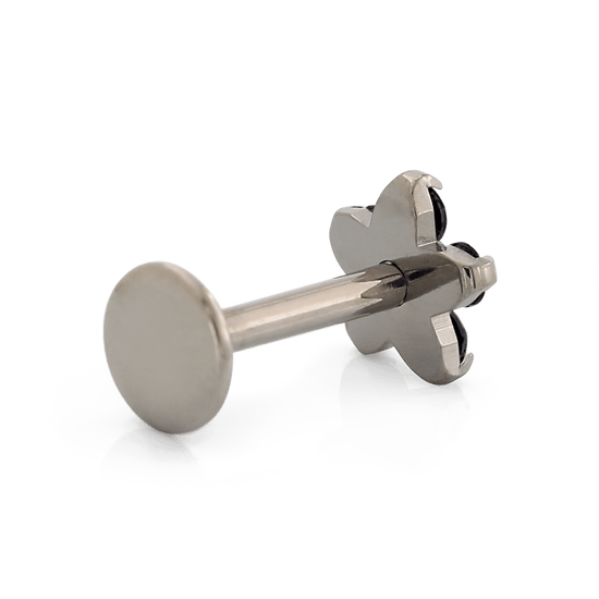 Fits any threadless post. If you buy it with a post in the options, it will come as a full piece with an 18g 1/4" post. That's the most common size for a healed ear piercing. The disk on the back of the post measures 4mm. |