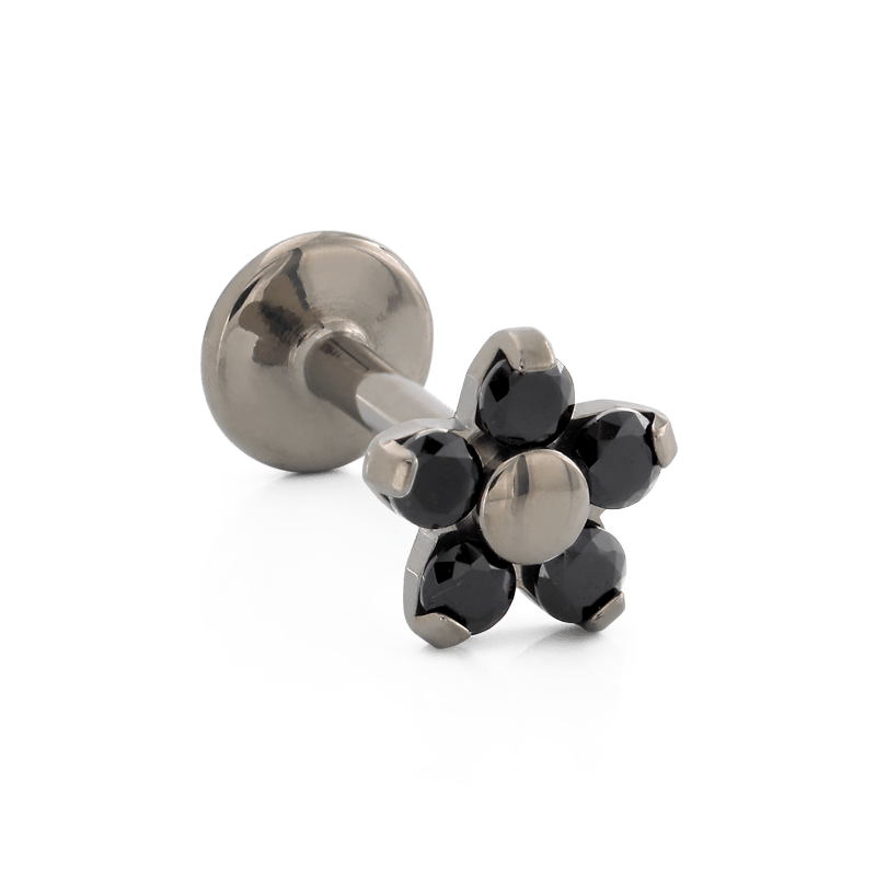Size: 4.7mm Material: Titanium Gemstones: 5 x 1.5mm Cubic Zirconia |