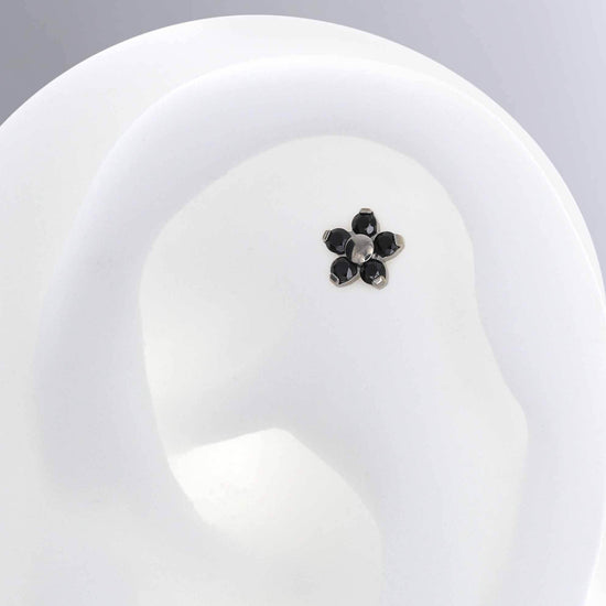 How about a flower to sparkle up your ear! If you want something a little larger than a single stone, but want to keep the profile of your earring low, this piece is perfect. Since it combines 5 small gemstones you get that extra shine without the bulk of a single large stone!