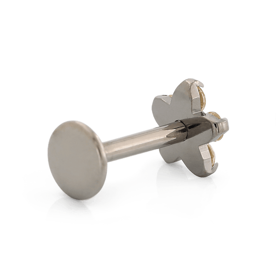 Fits any threadless post. If you buy it with a post in the options, it will come as a full piece with an 18g 1/4" post. That's the most common size for a healed ear piercing. The disk on the back of the post measures 4mm. |