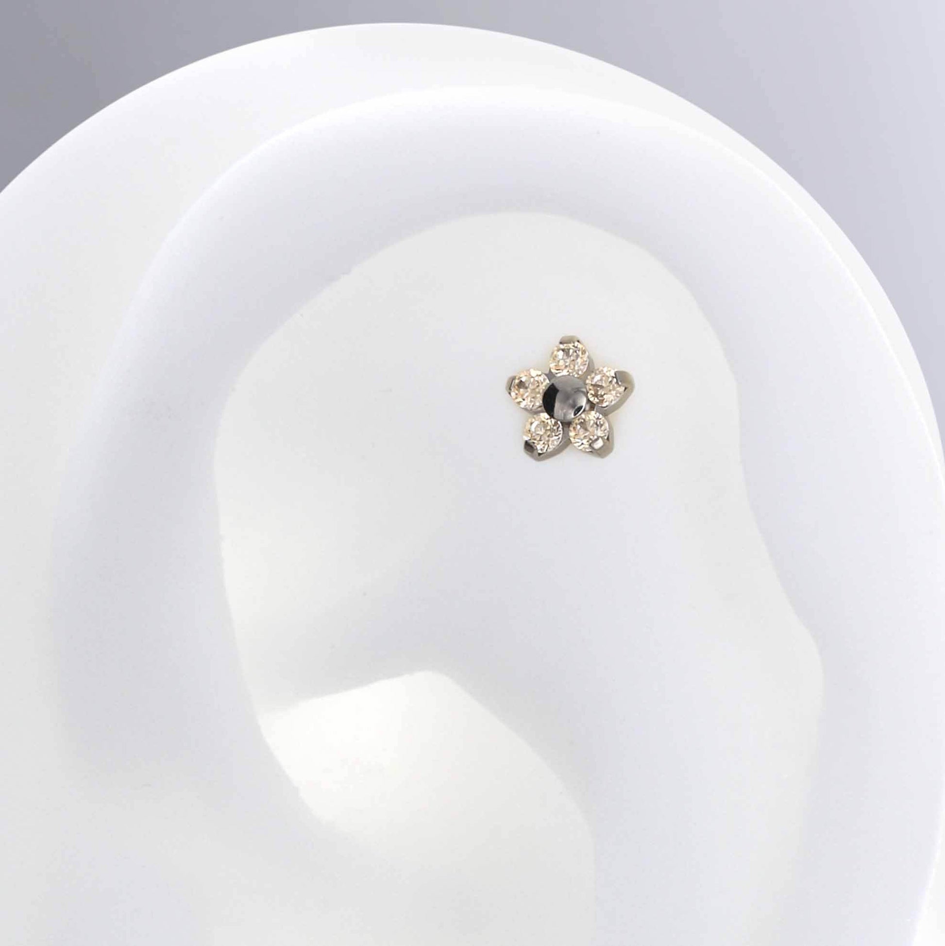 How about a flower to sparkle up your ear! If you want something a little larger than a single stone, but want to keep the profile of your earring low, this piece is perfect. Since it combines 5 small gemstones you get that extra shine without the bulk of a single large stone!