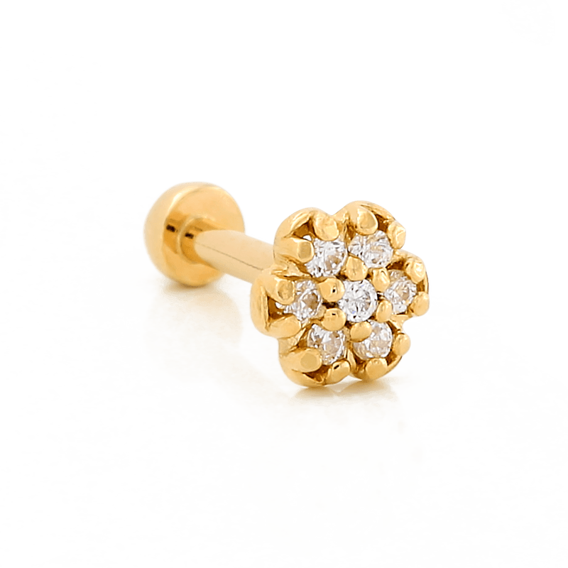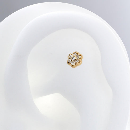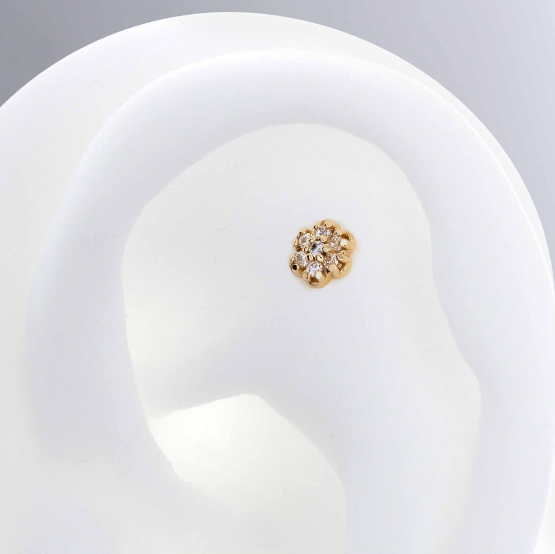 Fits any threadless press-fit post. "With Gold Post" comes with an 18g 1/4" 14k Half-Dome Gold post by Pupil Hall. |