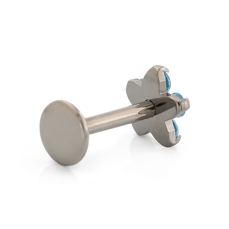 Fits any threadless post. If you buy it with a post in the options, it will come as a full piece with an 18g 1/4" post. That's the most common size for a healed ear piercing. The disk on the back of the post measures 4mm. |