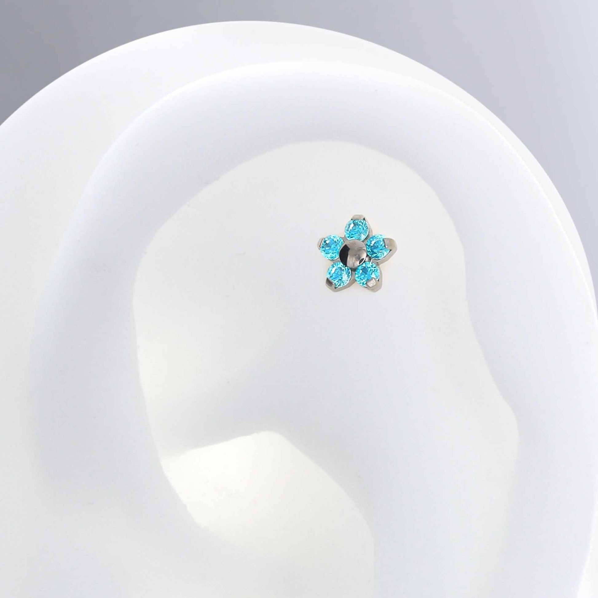 Size: 4.7mm Material: Titanium Gemstones: 5 x 1.5mm Cubic Zirconia |